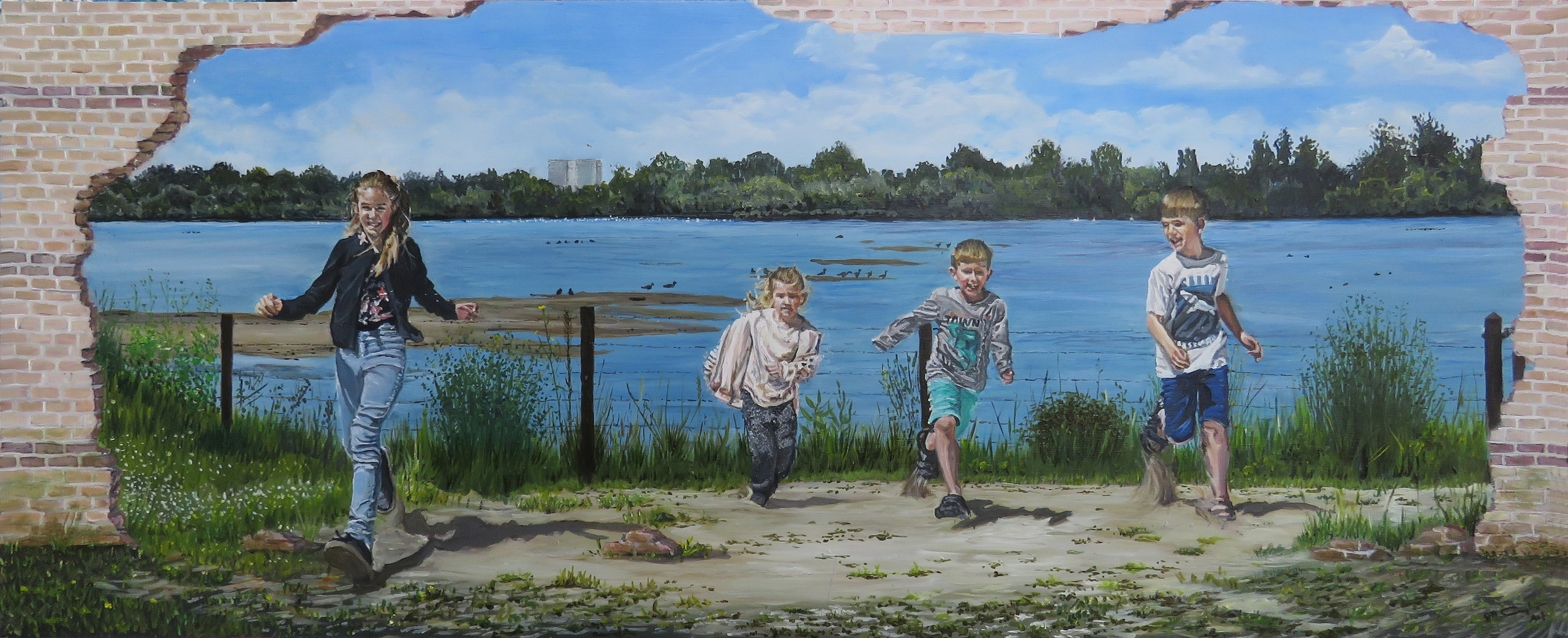 Aanvankelijk opgezet als een onderdeel van de schets voor de Muurschildering aan de Eurusweg in de Bilt. Later uitgewerkt als dank aan mijn inspirerende kleinkinderen.