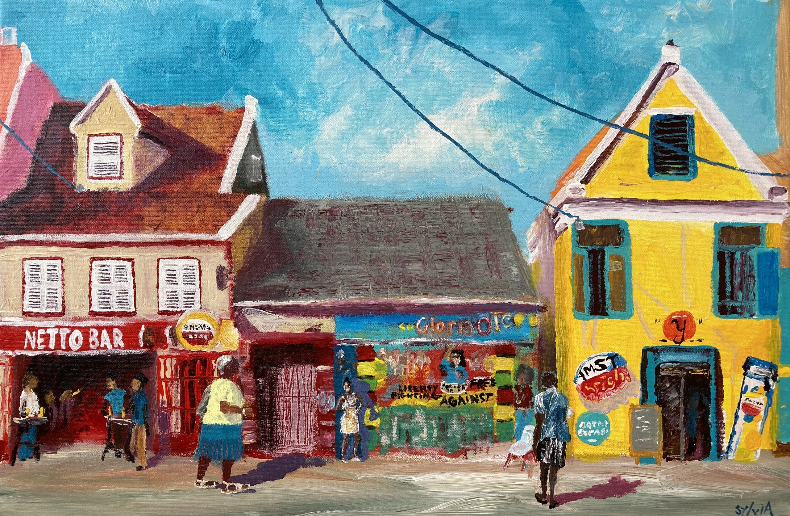 Art Painting The Bar Willemstad Curacao City Aruba Caribbean Island Caribisch Otrabanda Otrobanda Otc Netto Breedestraat