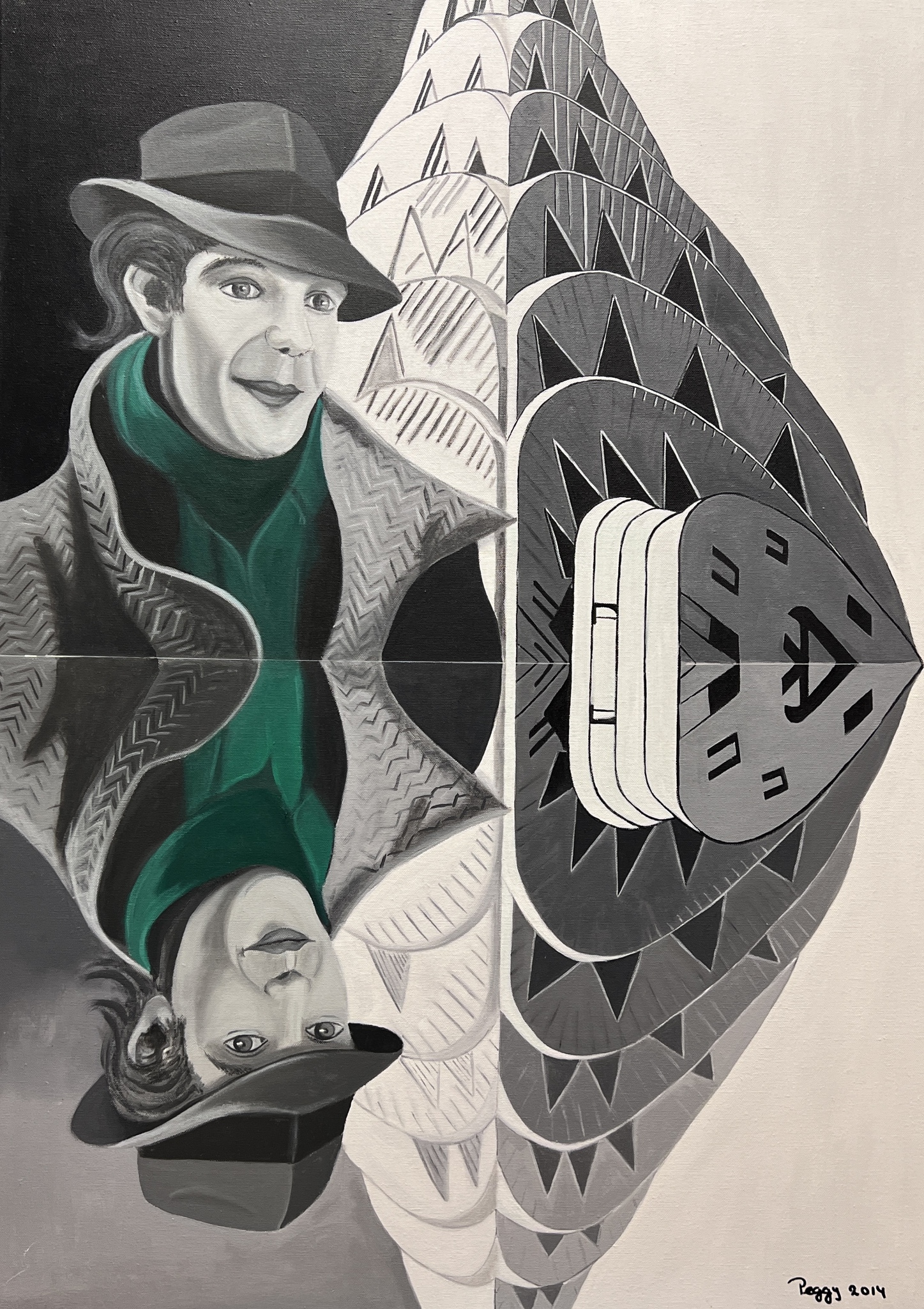 Het Empire State Building is 381 meter hoge wolkenkrabber in New York en heeft 102 verdiepingen en is geopend op 11 april 1931 en is een kantoor gebouw. Het bovenste gedeelte heb ik gebruikt voor mijn schilderij de Joker. Hoogte 100 cm x Breedte 70 cm x Diepte 1,5 cm