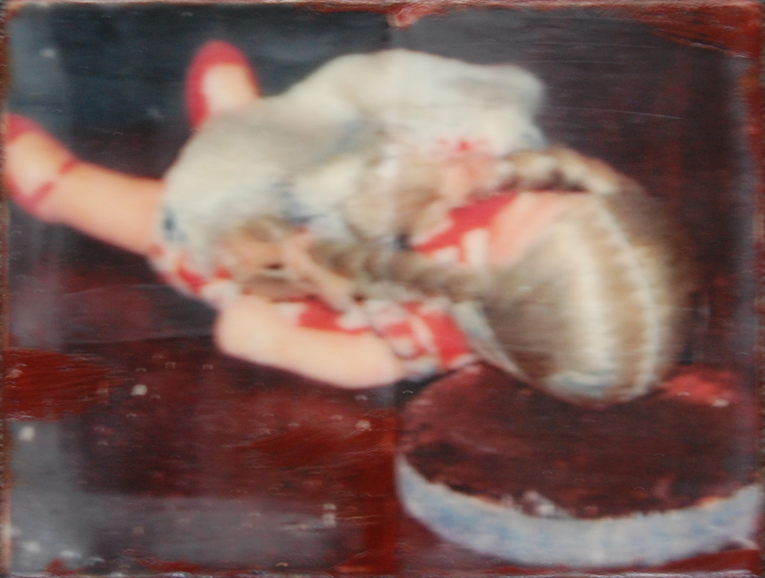 Encaustiek met foto, 15 x 20 cm en 4 cm dik spieraam met linnen