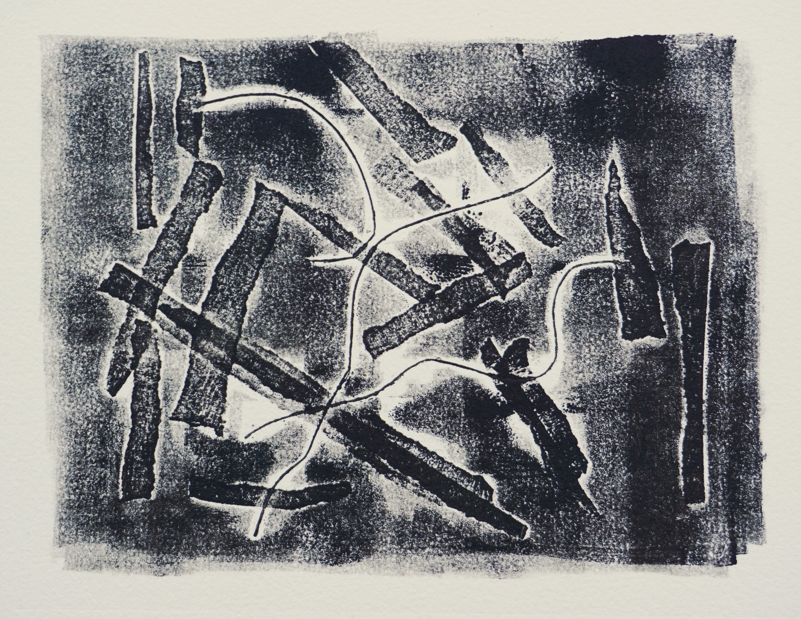 Komt de drang om te zoeken / primair voort uit een behoefte / noodzaak, of wens / of is zoeken een autonome trek. (monoprint)