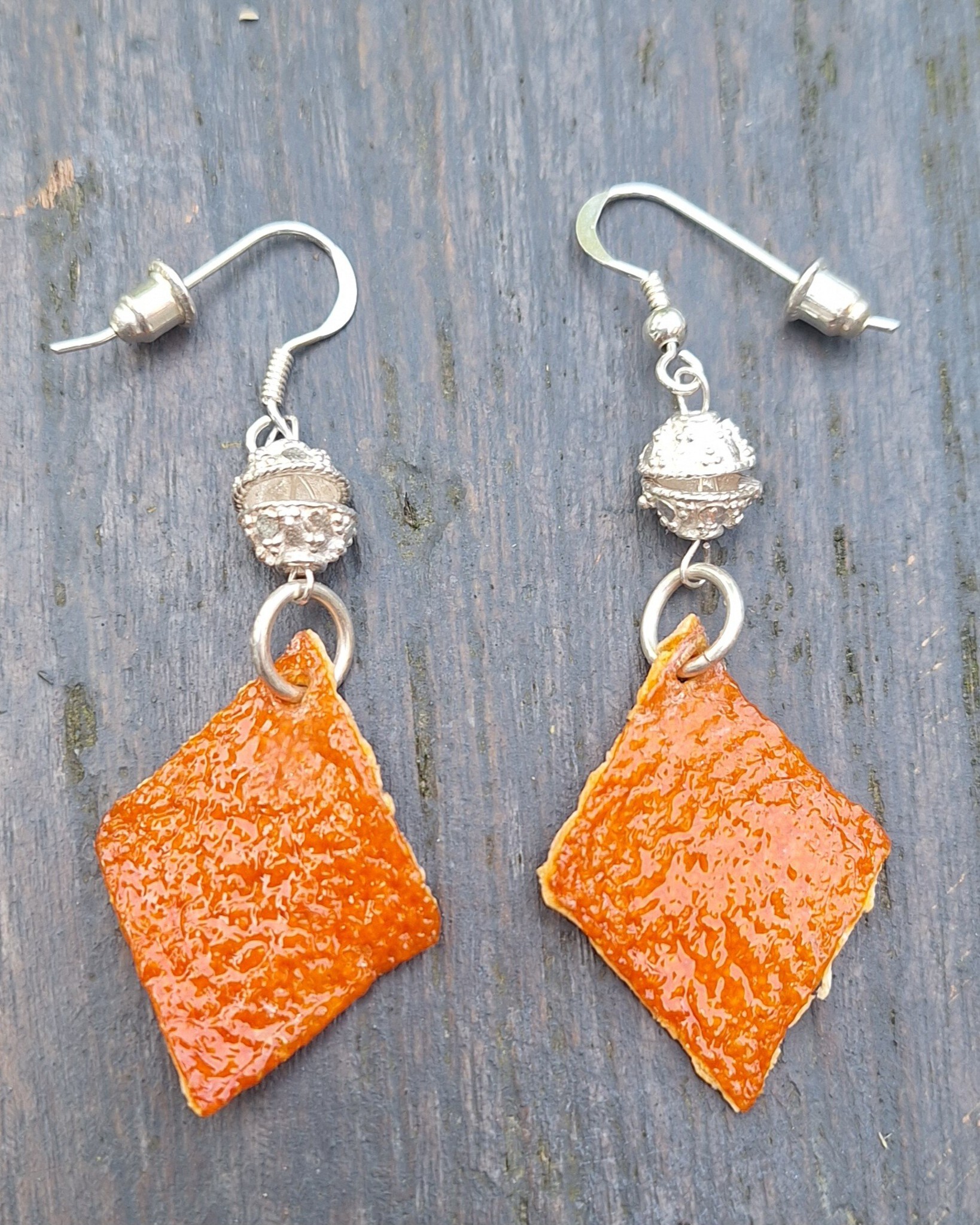 Zilver Oorhanger Oorsieraad Oorbellen Oranje Natuurlijk Materiaal Recycle