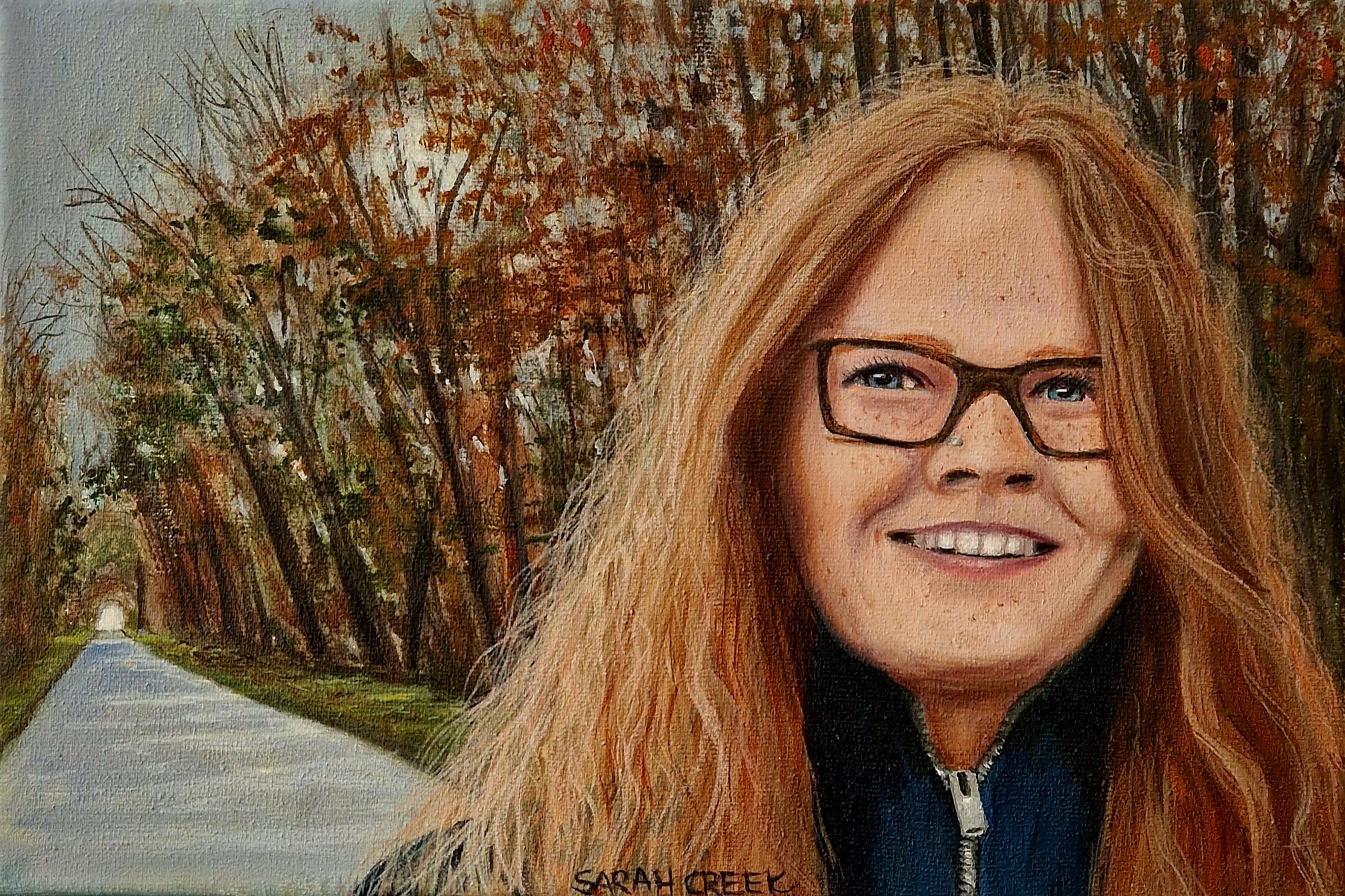 Sarah Creek schildert met acryl op canvas of linnen. Onderwerpen zijn portretten en stillevens. Sarah geeft les aan 55 talentvolle cursisten in een atelier aan huis.
