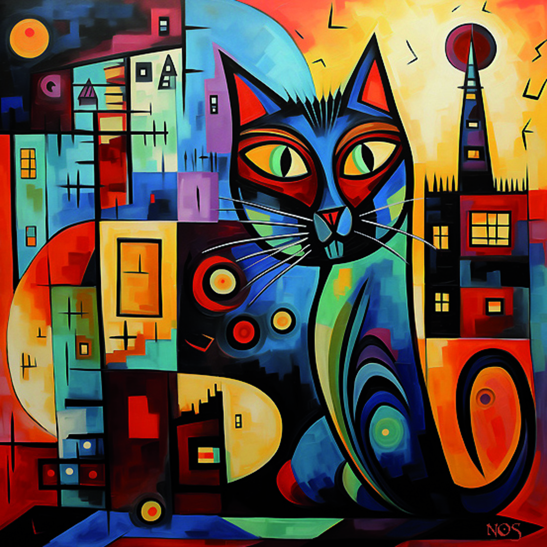 Cat. Een ode aan Wassily Kandinsky, Mixed media; als beperkte oplage in groot te verkrijgen en onbeperkt in klein op verschillend materiaal. Neem contact op voor de opties en kijk ook op mijn website www.kunst-apart.com