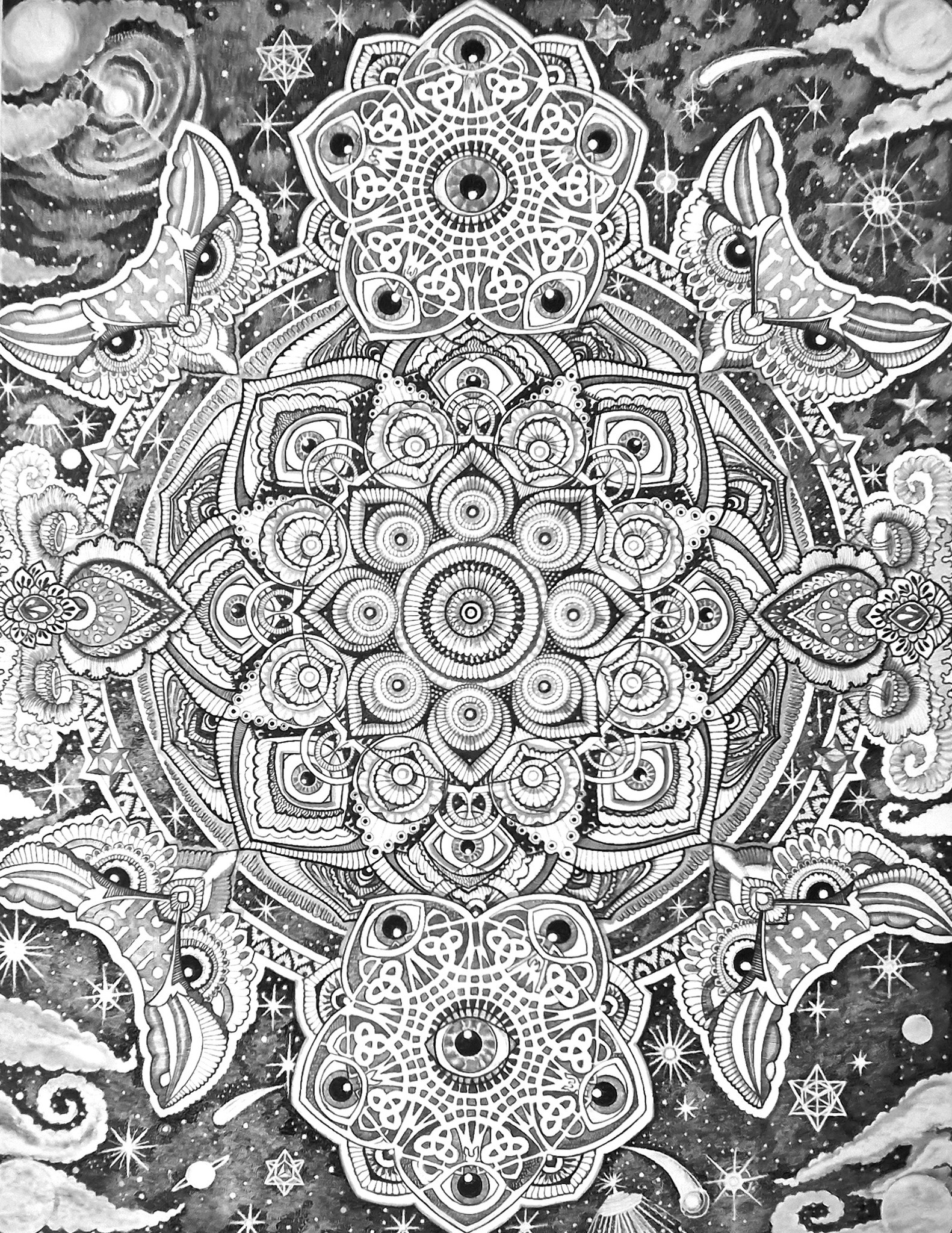 Art Black Surrealisme Fantasie Mandala Geometrisch Patronen And Pointilisme Grey Sacred Geometry Visionary Dotwork Hennakunst