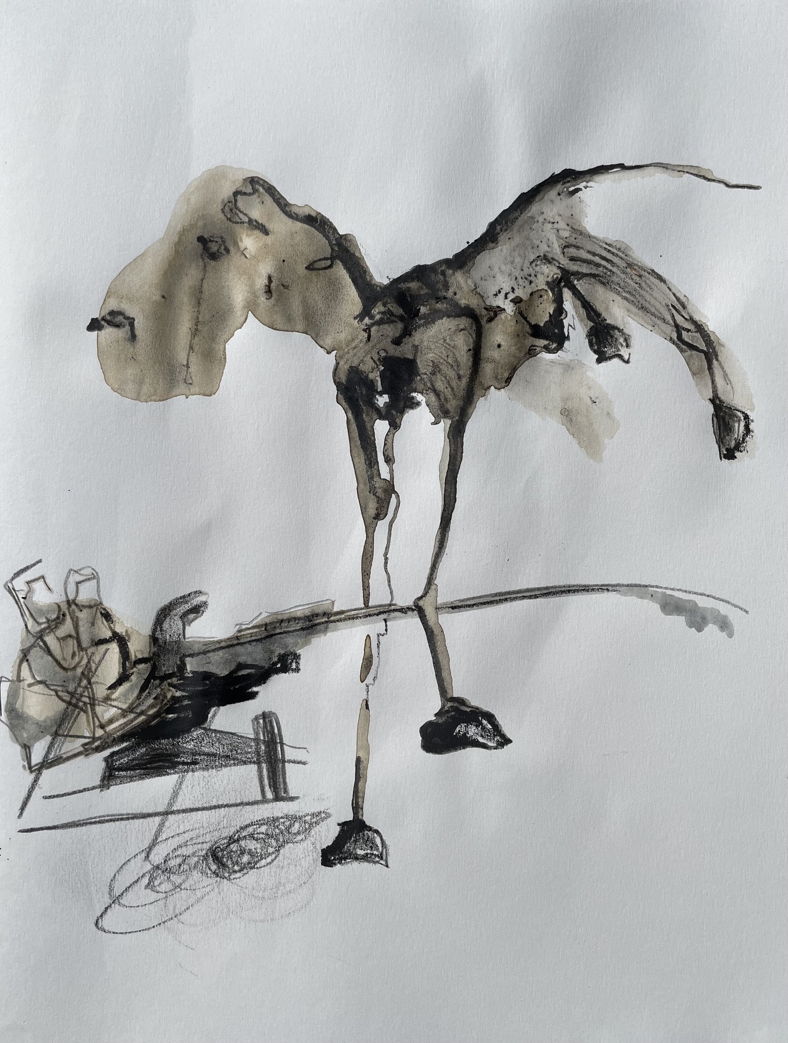 Grafiet, Bister, ArtGraf krijt, vloeibaar houtskool op papier.
