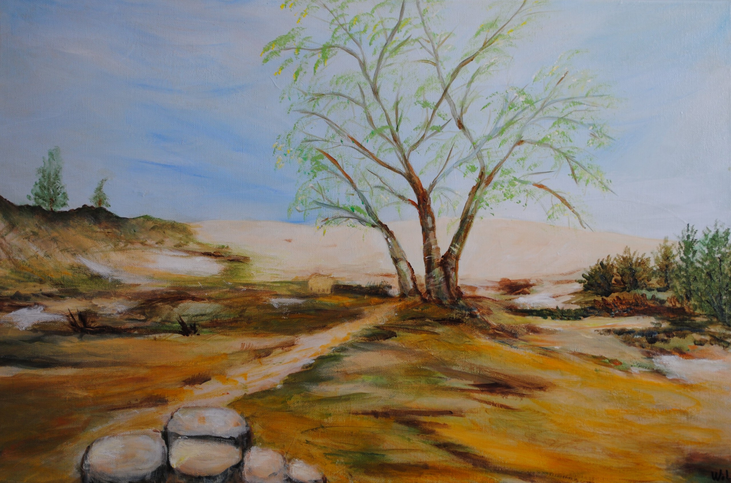 Zandlandschap met heuvel en boom