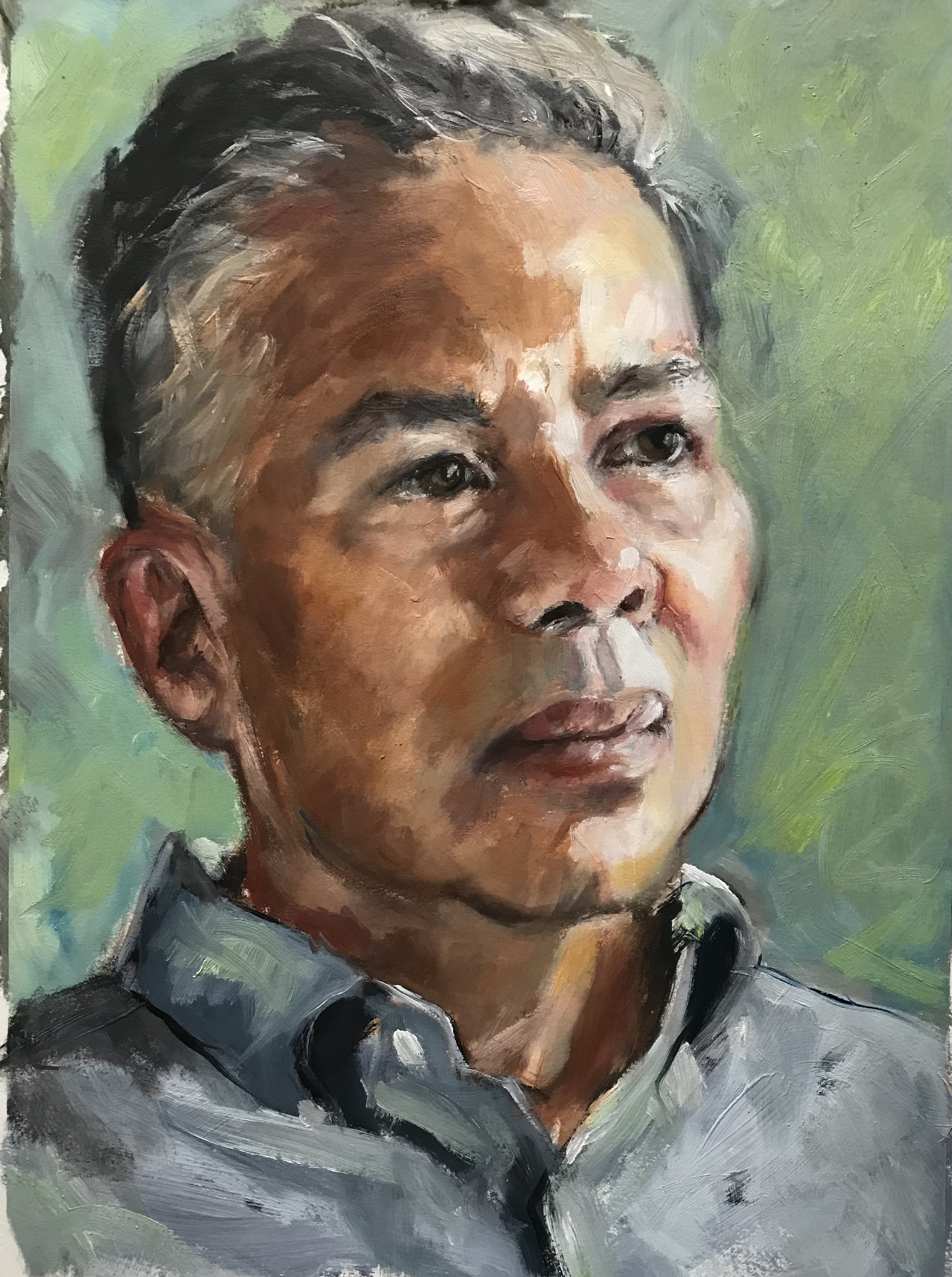 Portret naar korte modelsessie, verder uitgewerkt naar foto in mijn atelier.