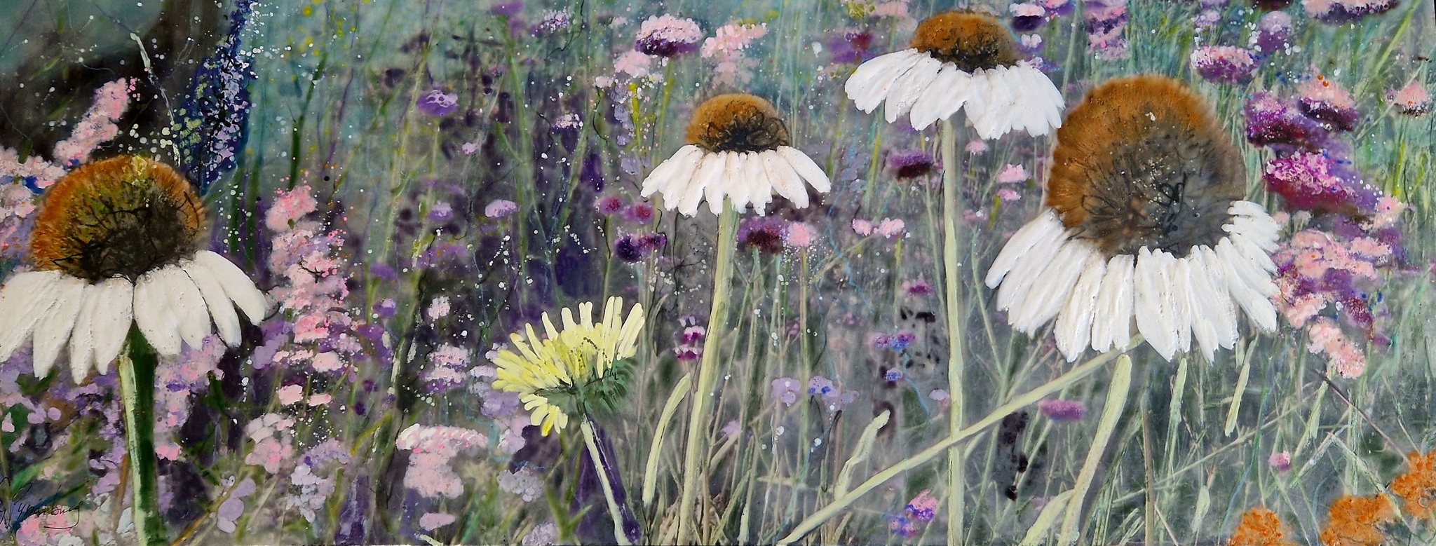 Wit Blauw Bloemen Encaustic Gekleurd Veldbloemen Bijenwas