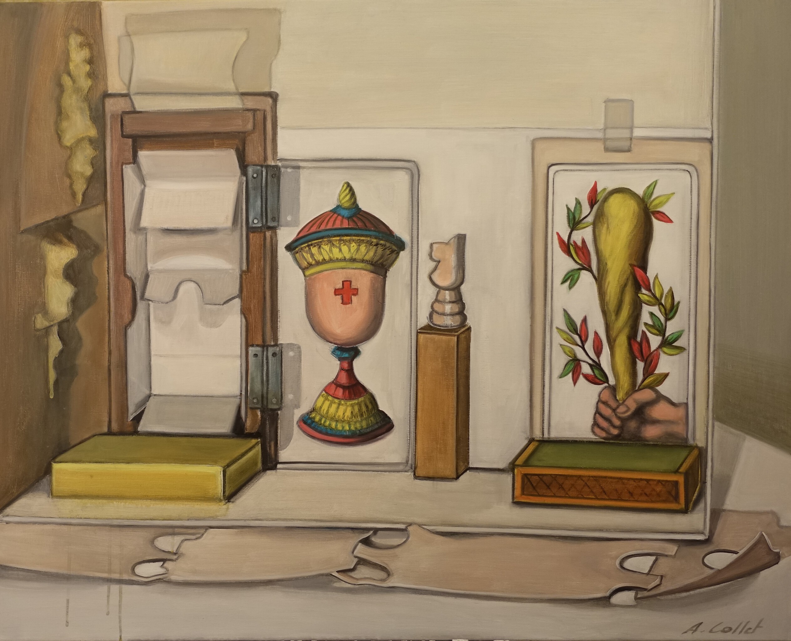 Schilderijen, tekeningen, beeldhouwwerken, collages, patchwork, poppen en meer beeldend werk van kunstenares Annick Collet