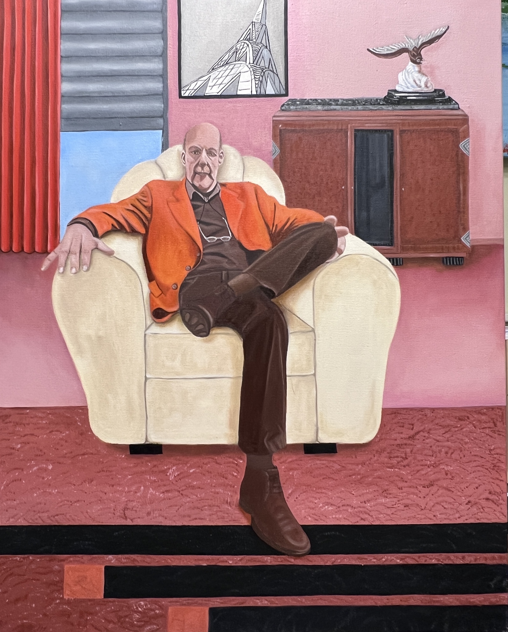 Art Deco stijl Olieverf schilderij over een art deco interieur Hoogte 100 cm x breedte 80 cm diepte 1,5 cm