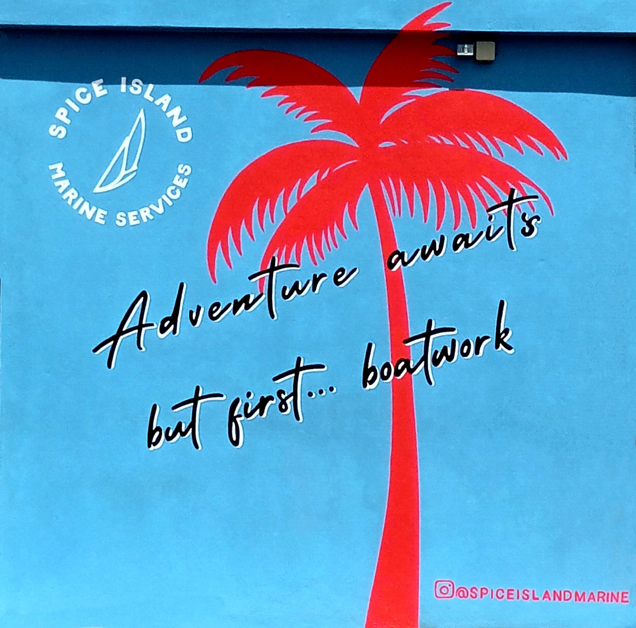 Tropisch Palmboom Quote Boot Boatwork Grenada Islandlife Boatlife Muurschildering Caribbeanartist