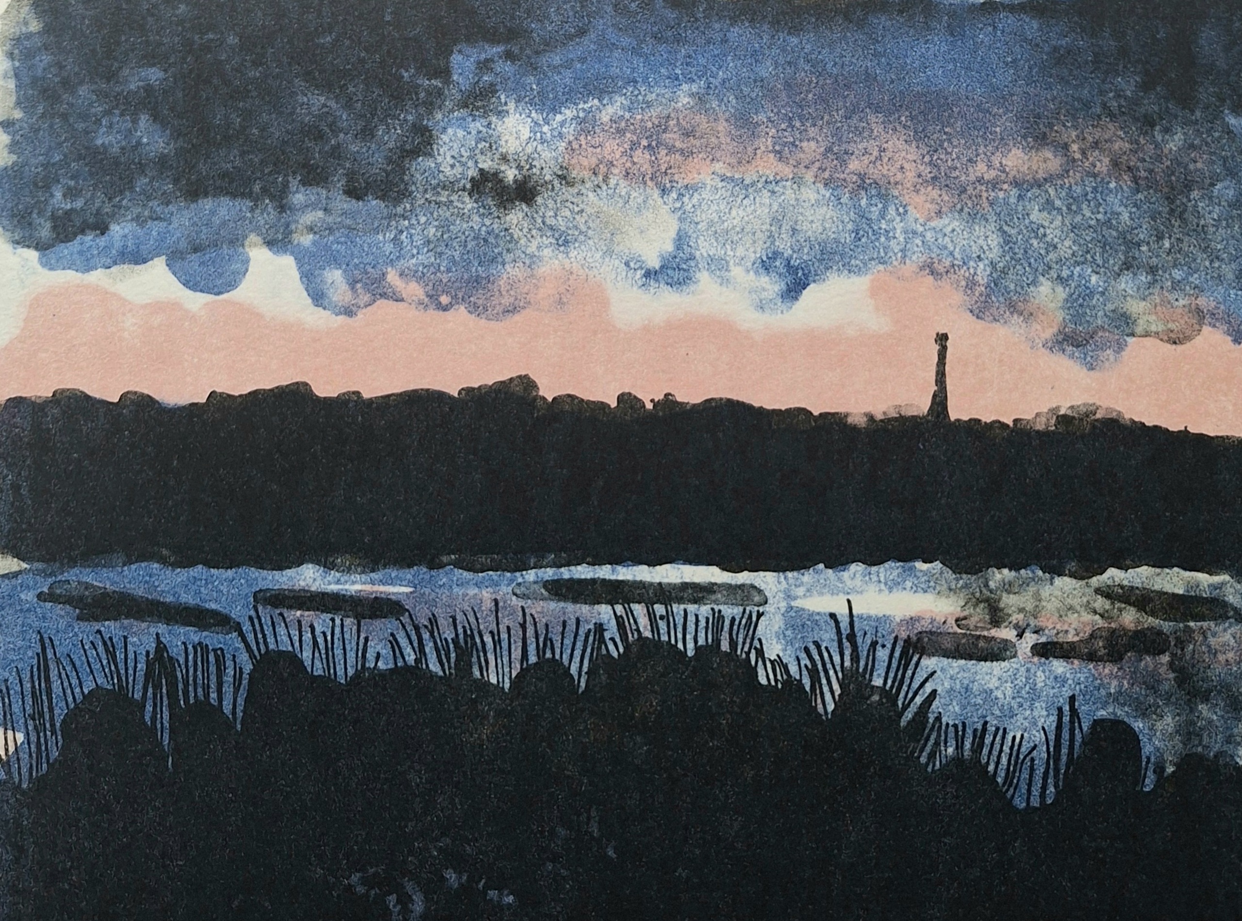 Horspolder bij avond (op de achtergrond de vuurtoren van Den Heder, de Lange Jan) Dit is onderdeel van een tweeluik. Er zijn losse prints maar er het werk komt ook heel goed uit samen met het zusterwerk op een vel