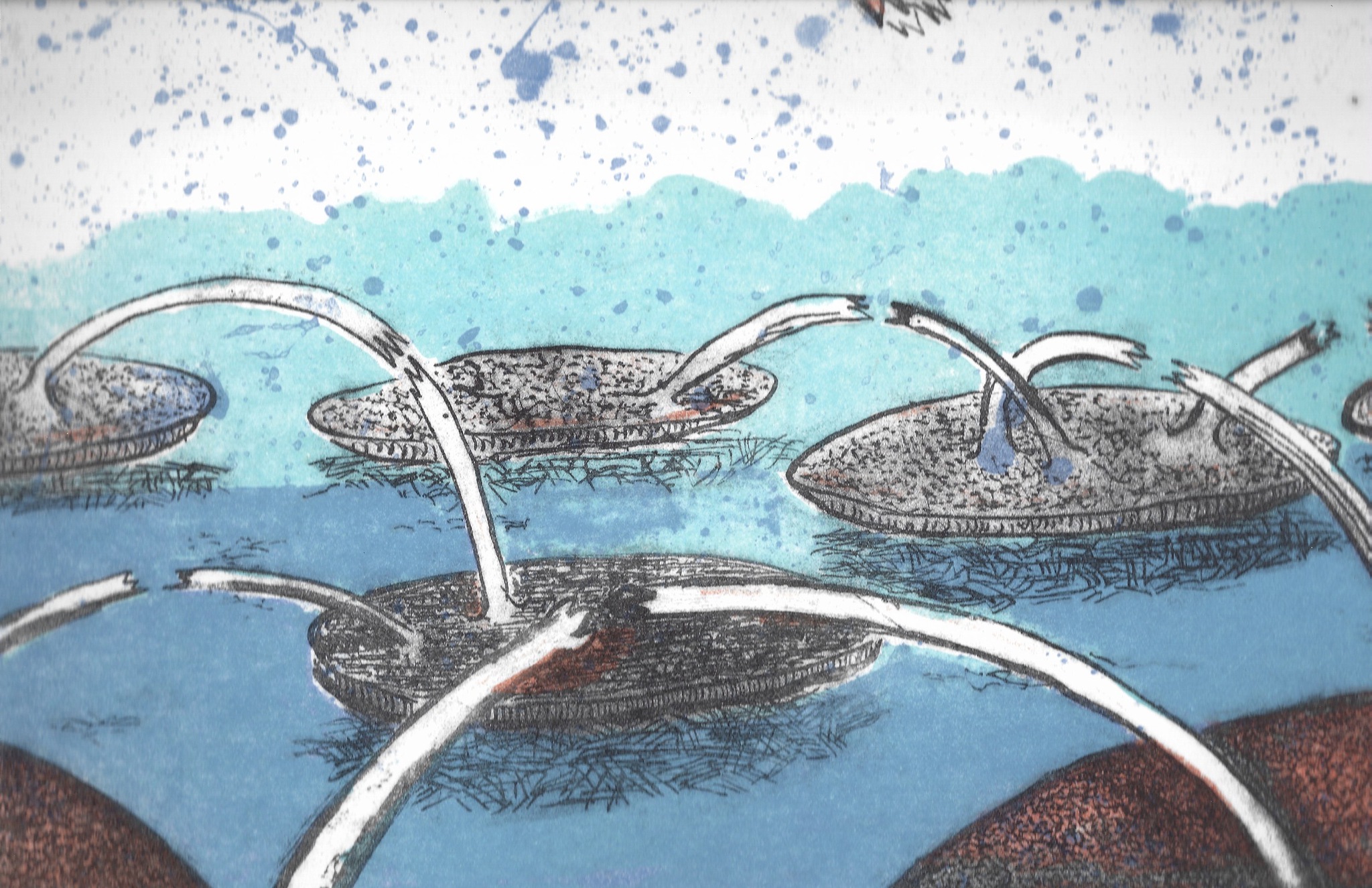 Broken links is een litho dat gaat over het verbreken van verbindingen tussen landen en mensen tijdens sancties, pandemieen en andere verstoringen. Er zijn diverse kleurstellingen.