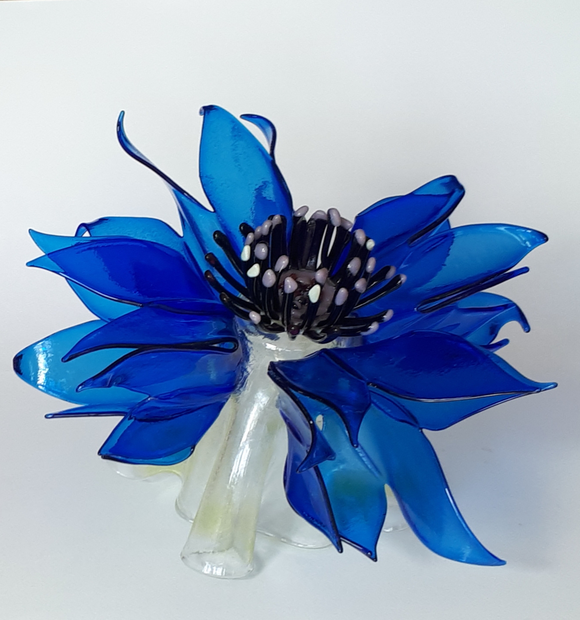 Blauw Paars Groen Blue Glaskunst Green Purple Korenbloem Glasfusie Cornflower Glassart Glassfusion Scheltema Louky Loukyscheltema
