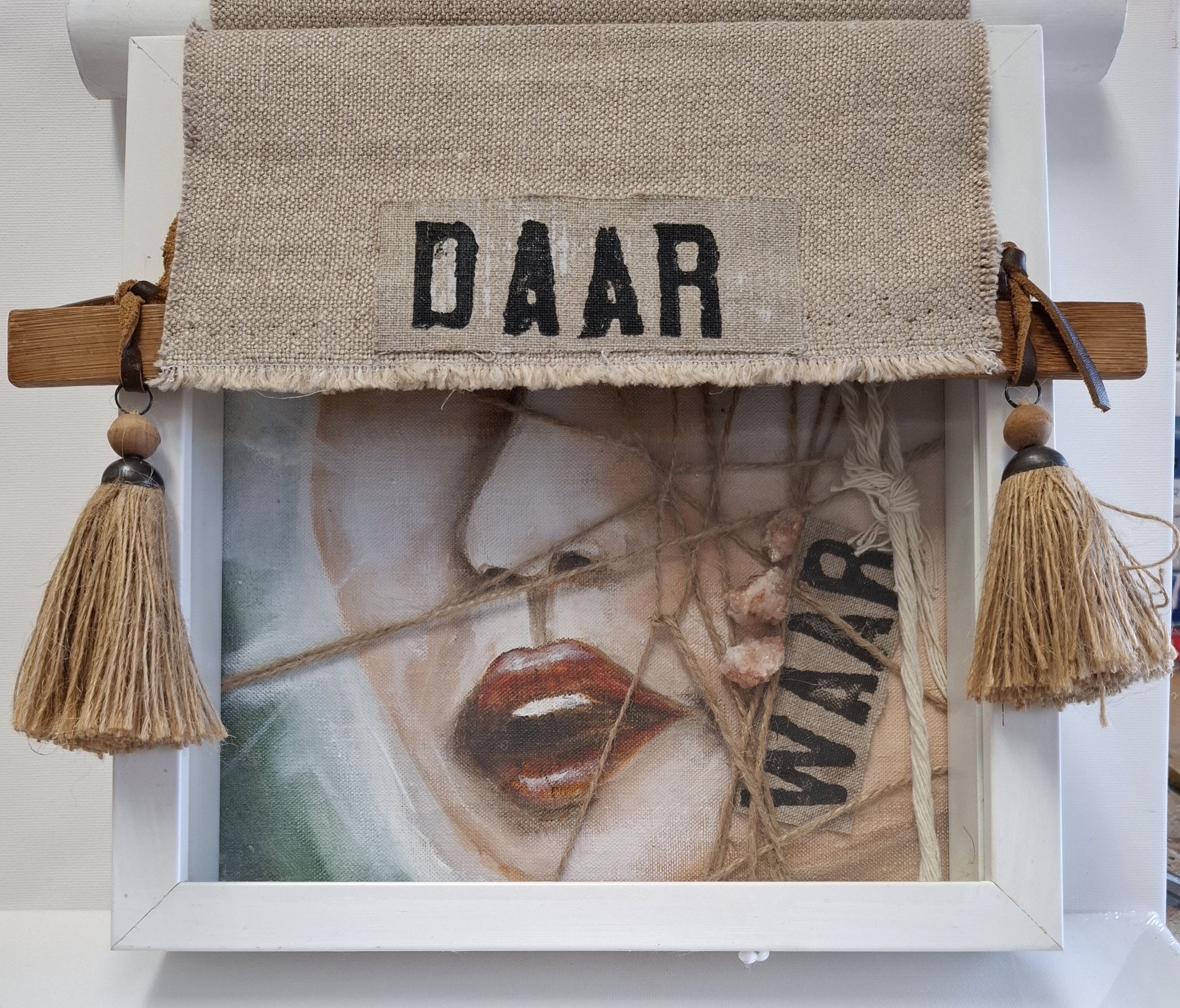 Kijkkastje met portret vrouw in verbazing Waar, Daar.