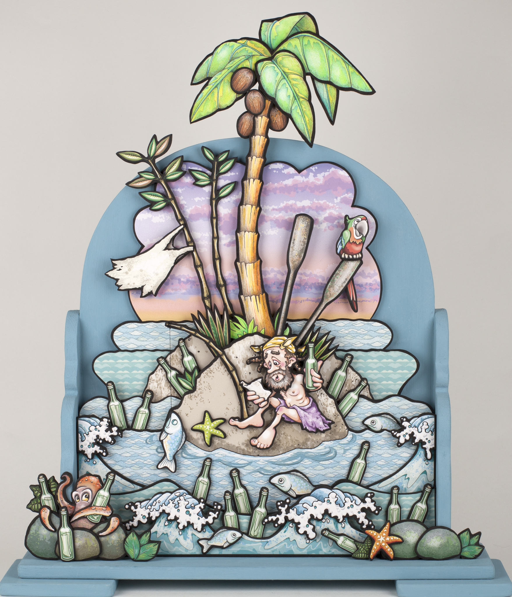 Daar zit je op een eiland, midden in de oceaan, de rest van het piratenschip met man en muis vergaan... Maar iemand ergens in de buurt heeft toch van hem vernomen, de briefjes in de flessenpost, het houdt niet op met komen.....