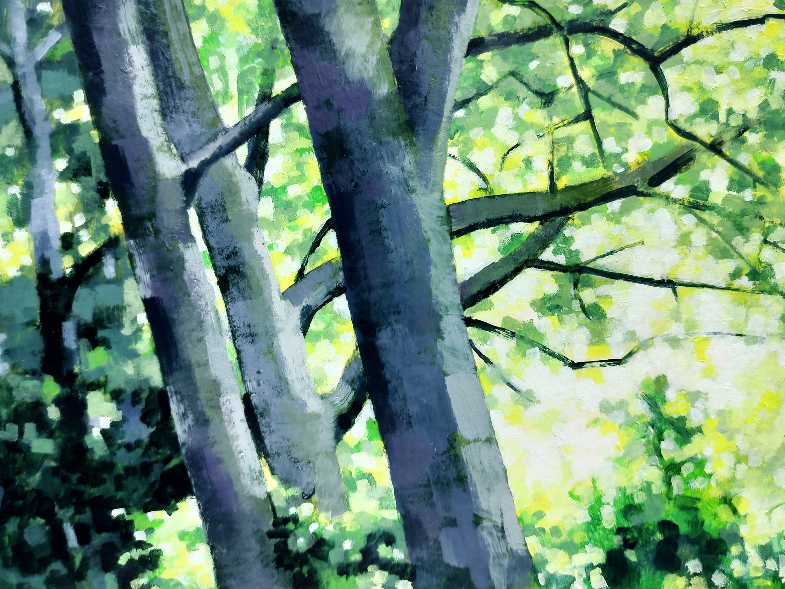 Ik ben gefascineerd door het licht dat in een bos door de bladeren valt. Het levert een voortdurend wisselend beeld op van licht en schaduw. Dit schilderij geeft een impressie van het licht in het bos op een zomerdag.