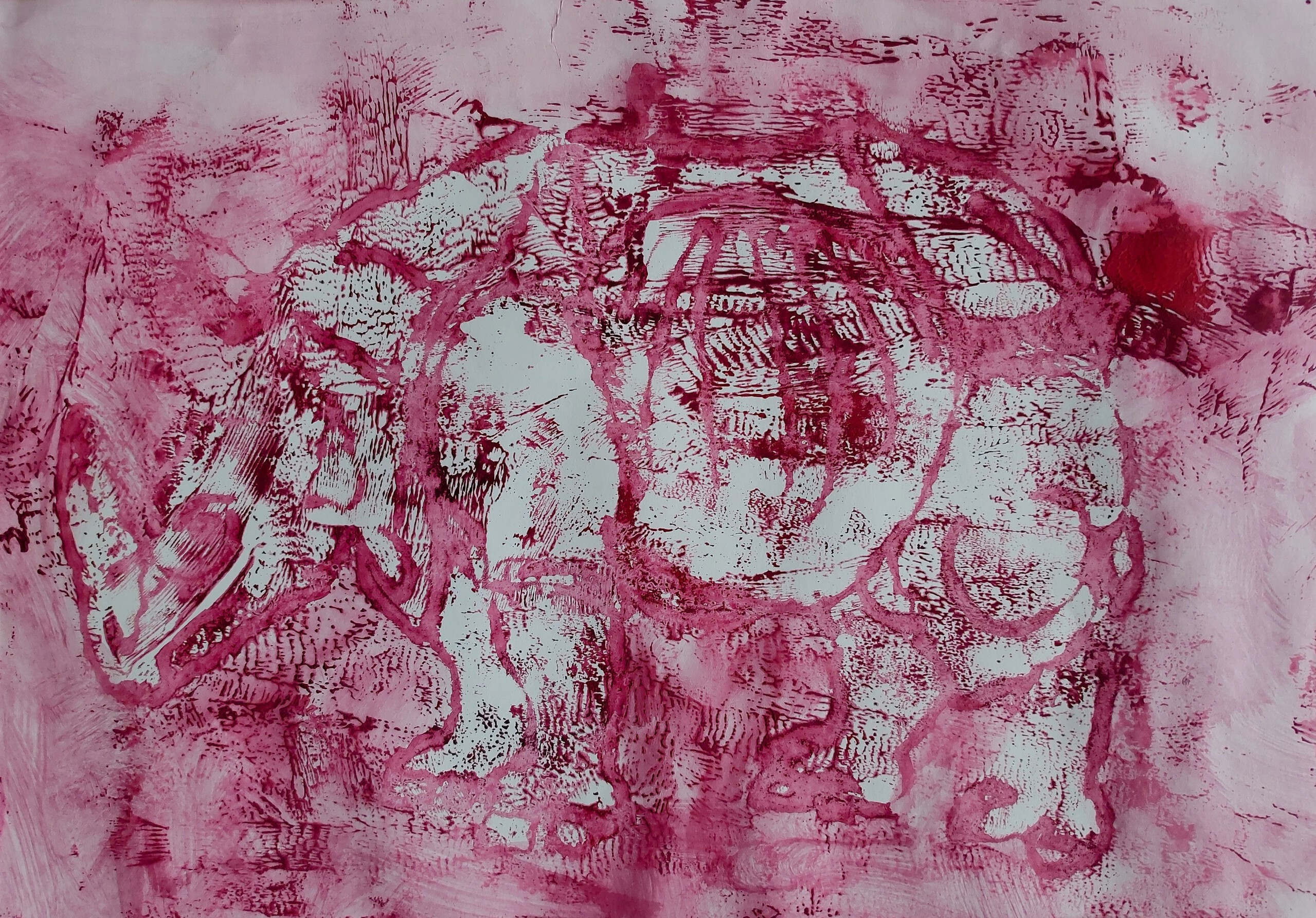 Monoprint plakaatverf, twee bewerkingen.