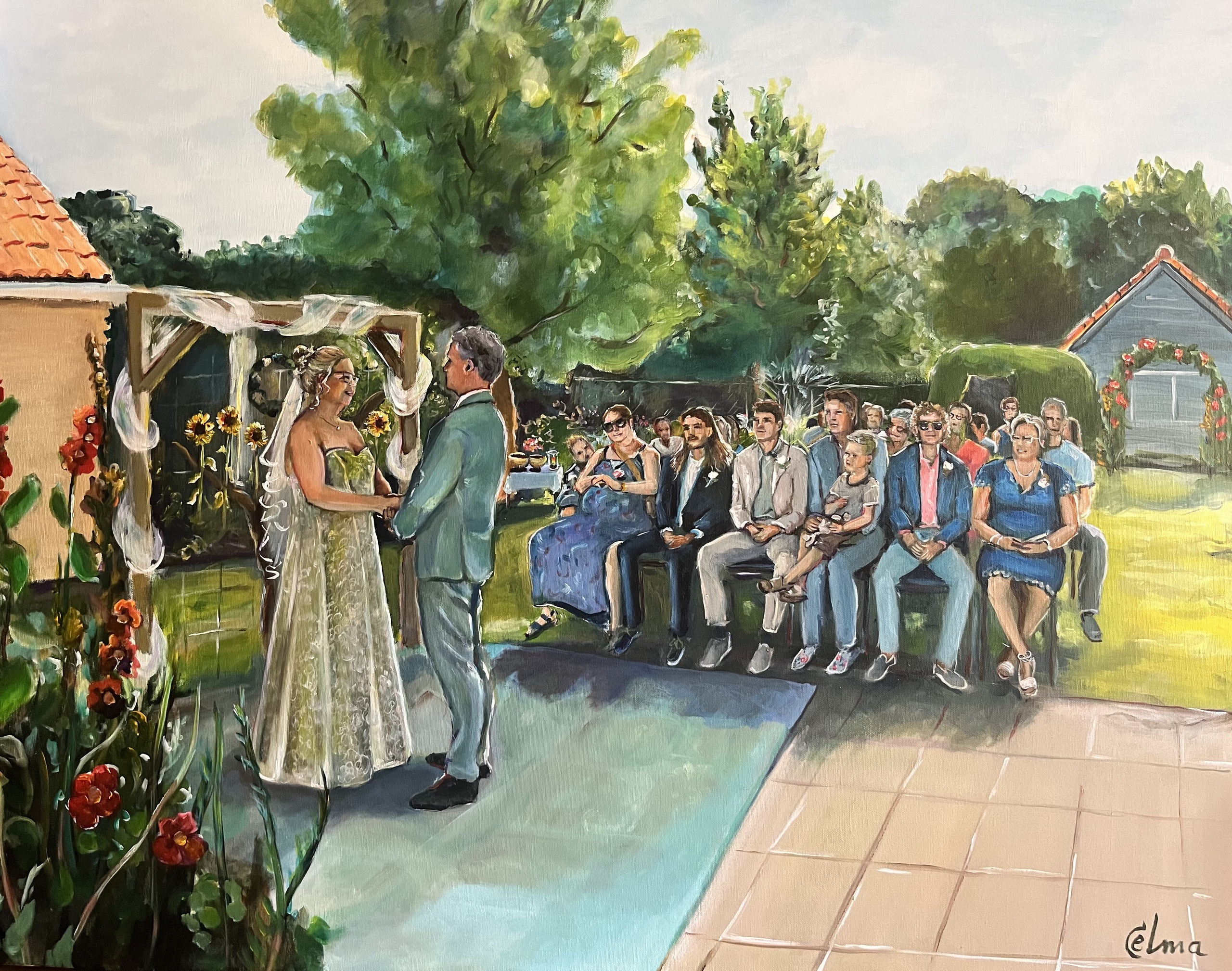 Livepaint Trouwen Ceremonie Achtertuin Cadeau Bruidspaar