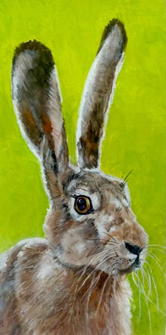 Op paneel vrij realistisch geschilderd. Kan worden neergezet in een houten standaardje, maar ook worden opgehangen.
