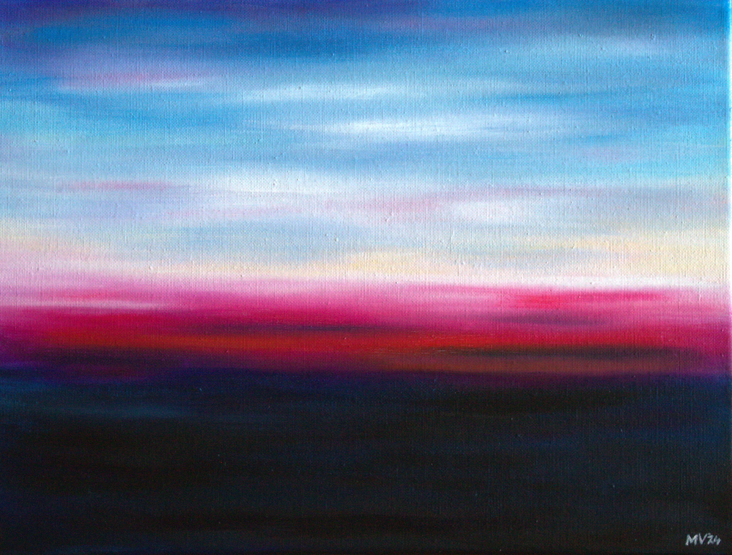 Sferisch schilderij, geinpsireerd op de horizonnen en luchten in Scheveningen, mijn woonplaats.