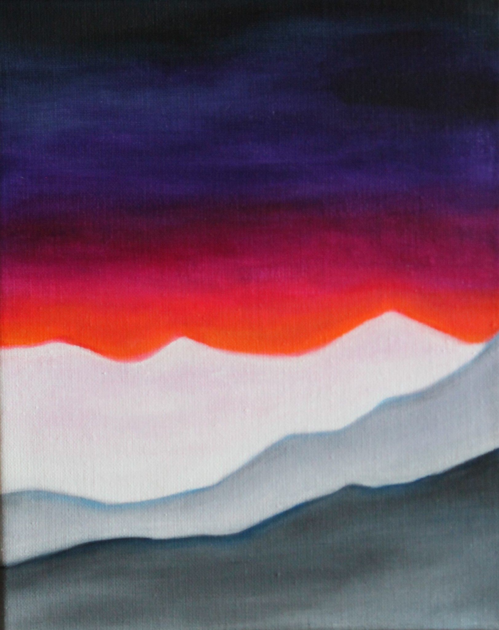 Innerlijk landschap dat gaat over het magische licht tussen "beneden"en 'boven", "hemel" en "aarde". Het verrasende en onverwachtse in het leven waarover je je kan verwonderen, weerspiegeld in de beleving van de kleuren.