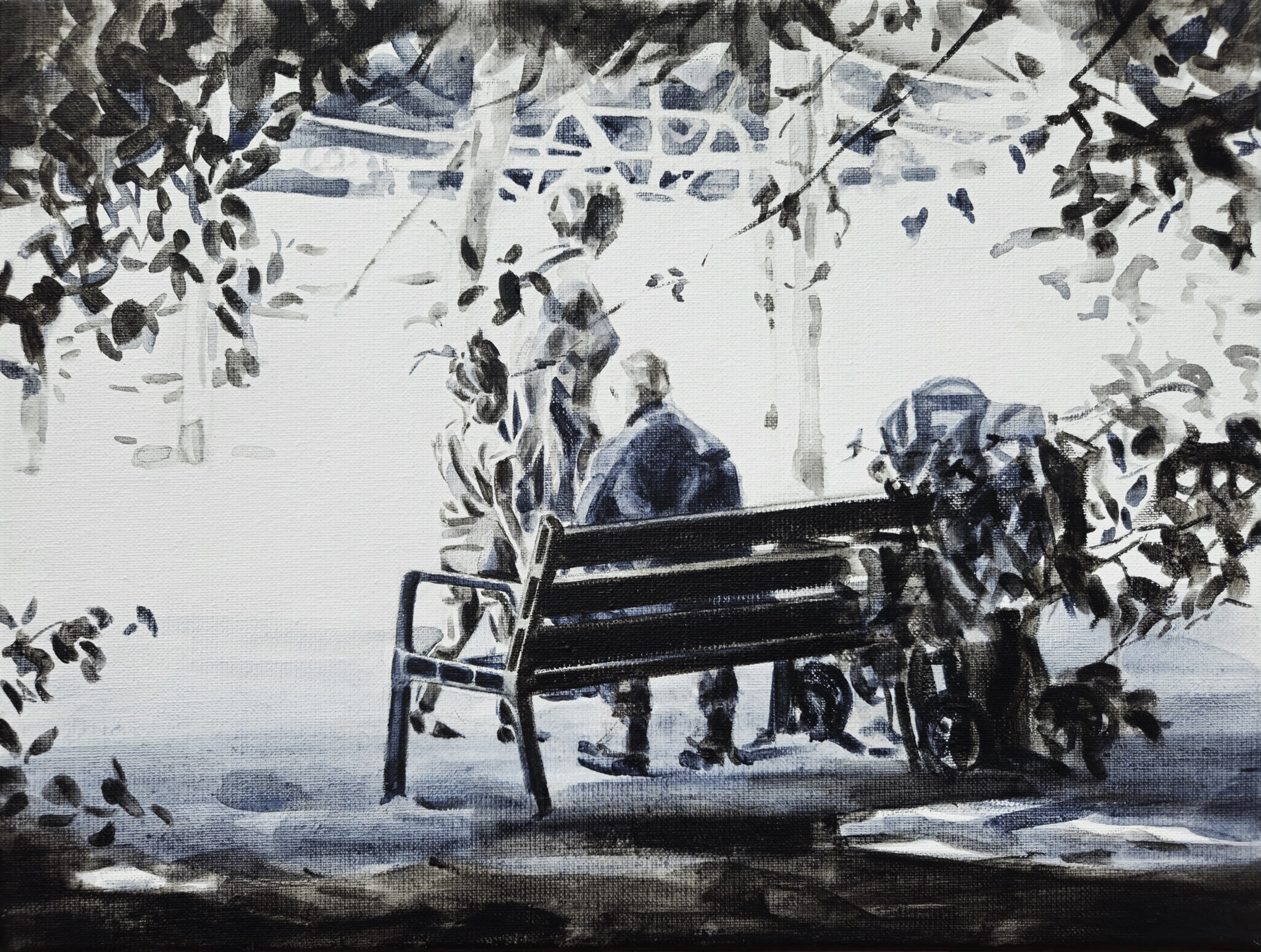 Wit Mensen Zwart Acryl Kind Man Tafereel Buiten Moeder Bank Zwartwit Park Ivoorzwart
