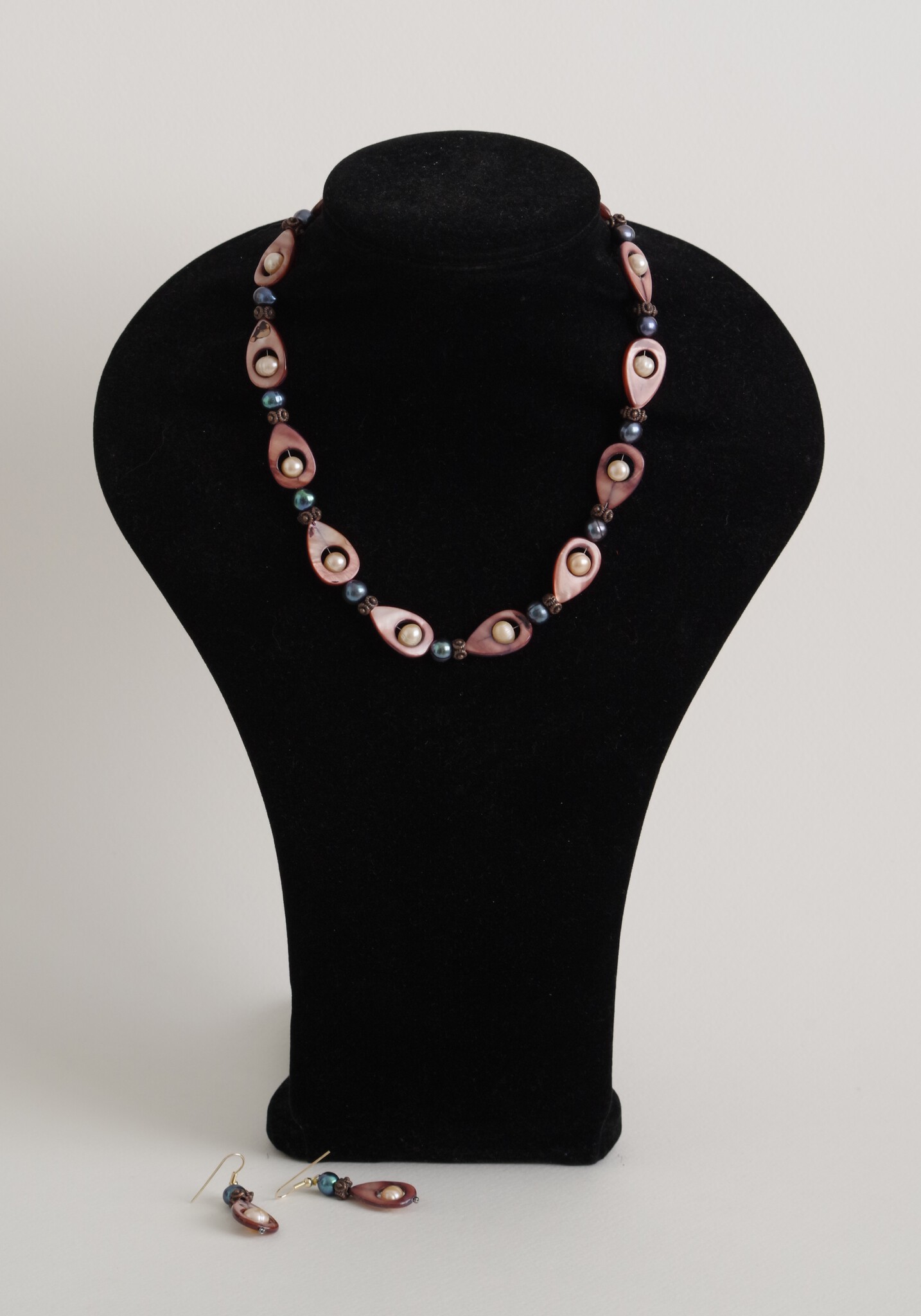 parelmoer, zoetwaterparels, metaal, inclusief oorbellen