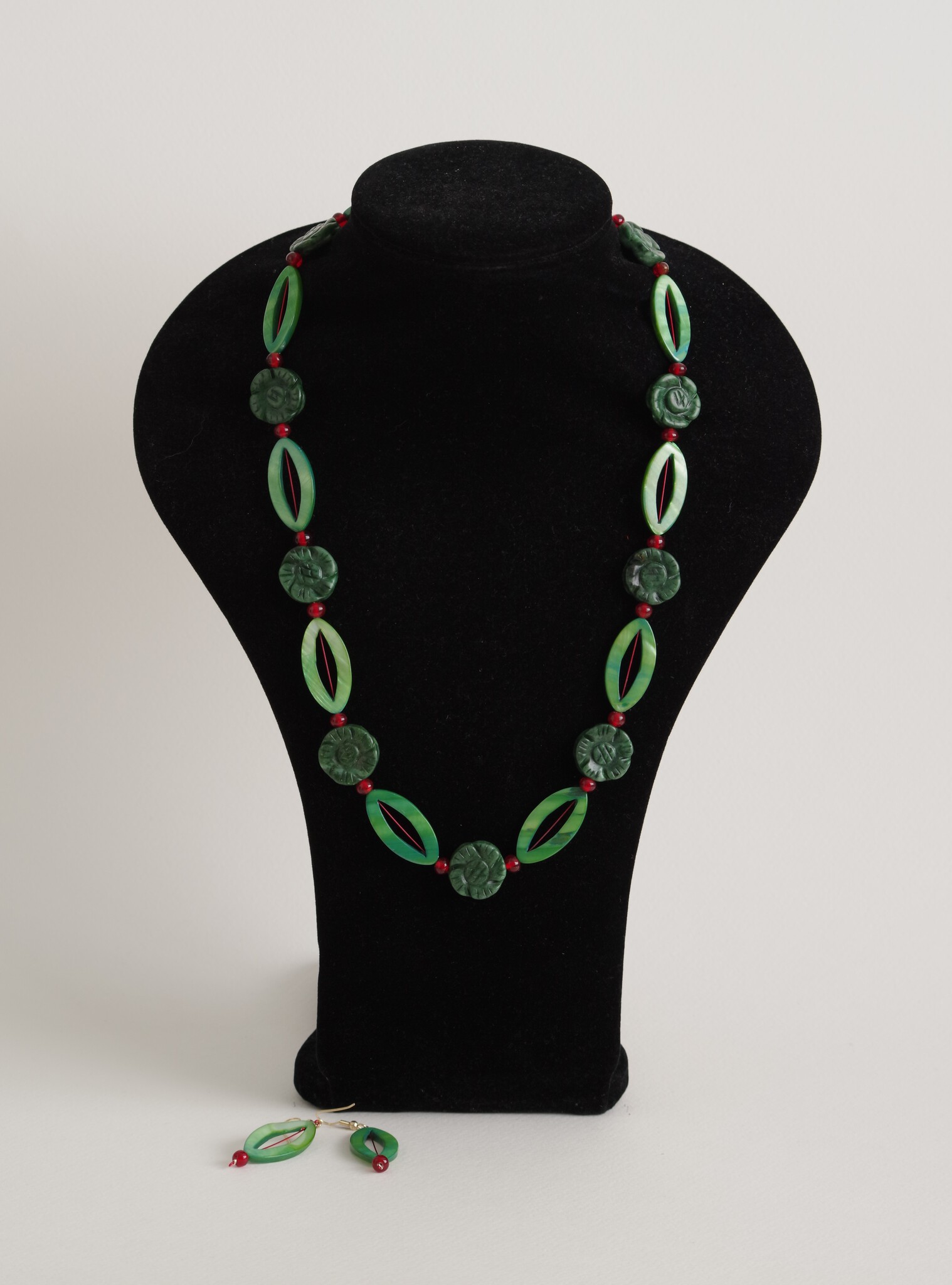 parelmoer, zeepsteen, glas, inclusief oorbellen