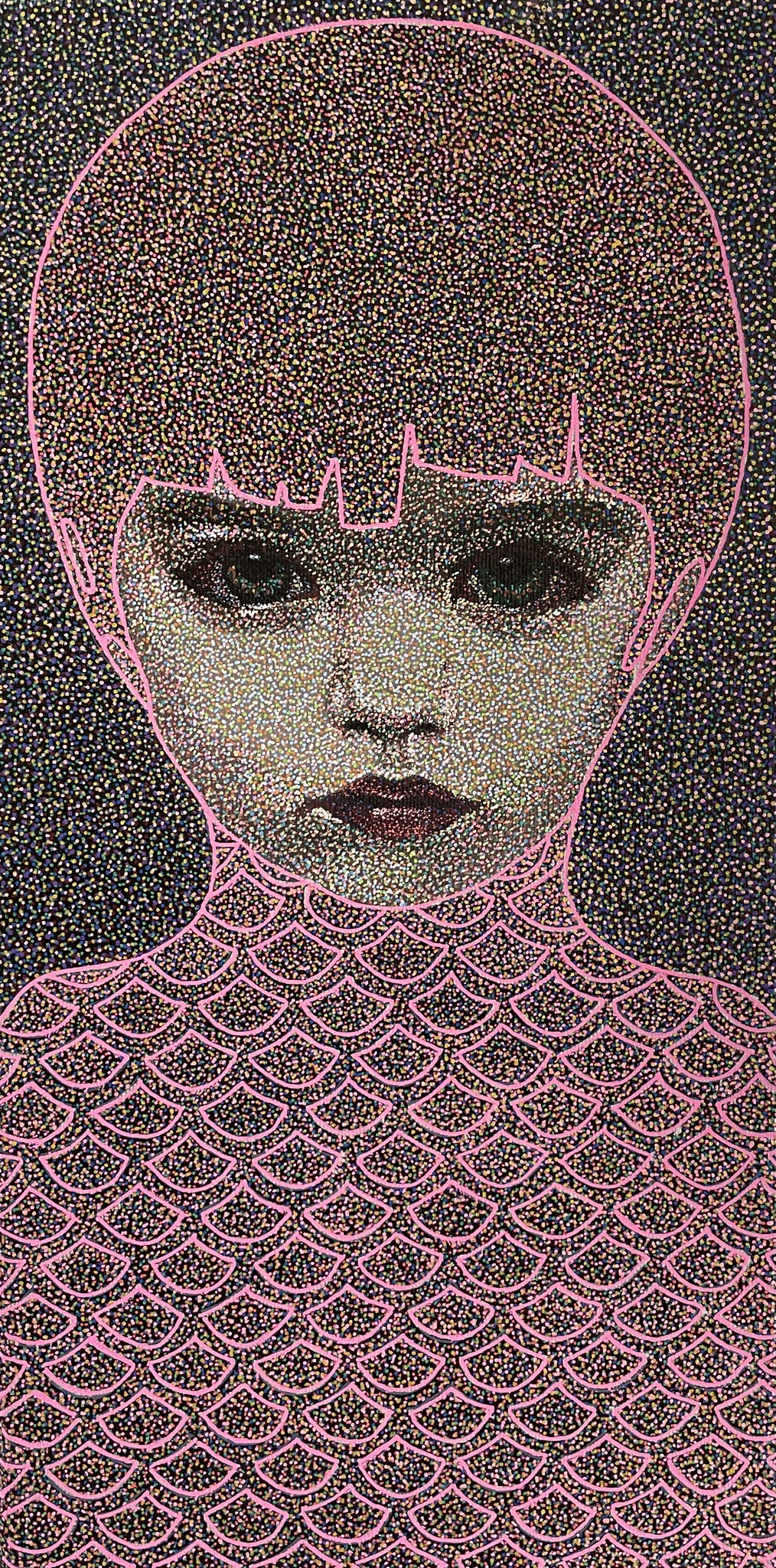In mijn 'modern pointillistische' werk onderzoek ik of je de ziel kunt ‘vangen’ in een portret. De gelaagdheid van de duizenden stipjes, geeft de gelaagdheid van de binnenwereld weer.