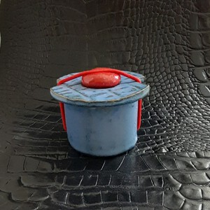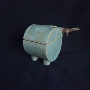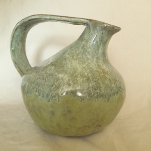 Kan van keramiek met groene glazuur, kan is niet waterdicht. handgemaakt unicum.