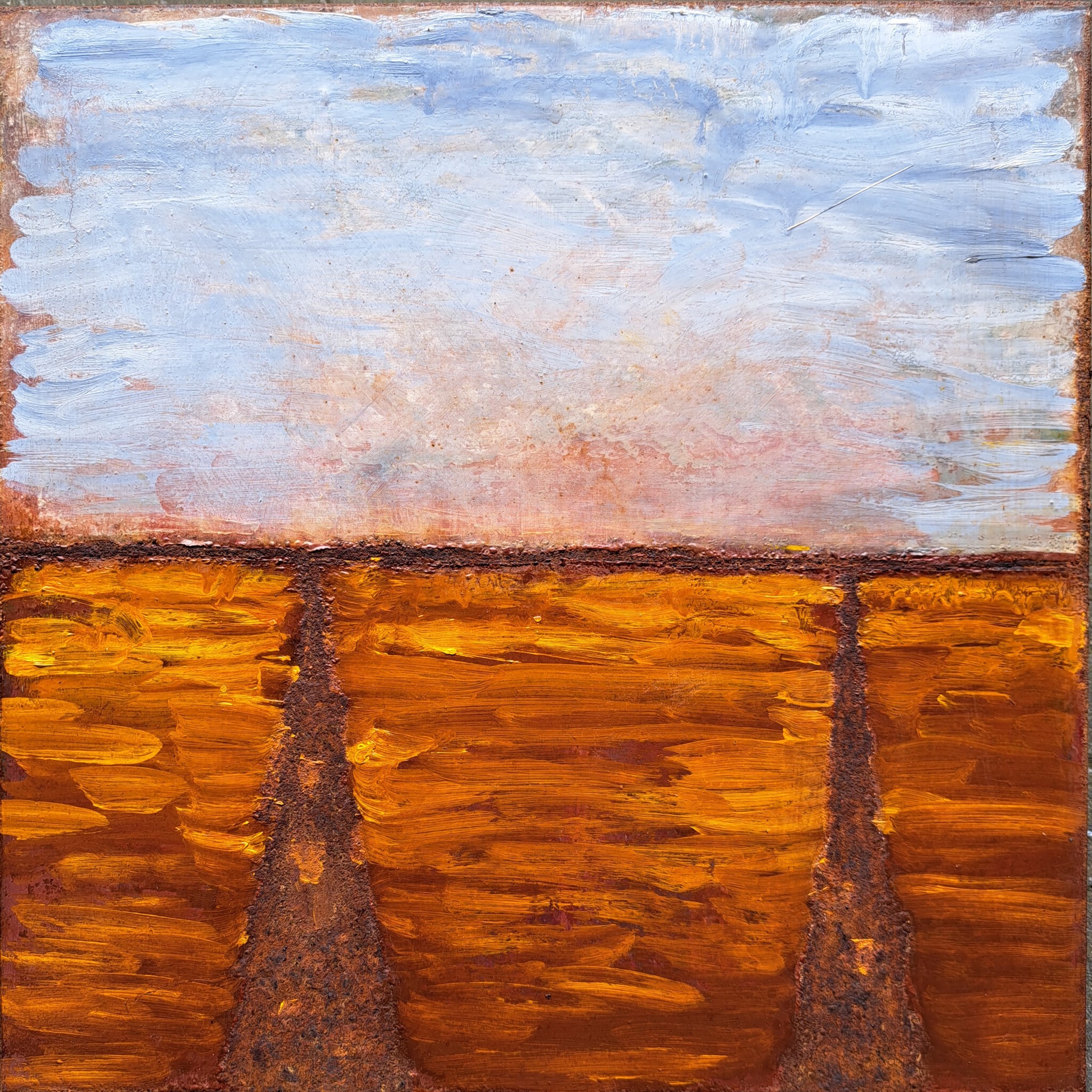 Olieverf met roest op staal. 40x40cm
