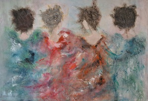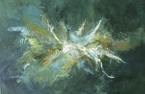 "Lily was here..." (24-8) Dit werk is aan de zijkanten doorgeschilderd waardoor er geen lijst om hoeft.