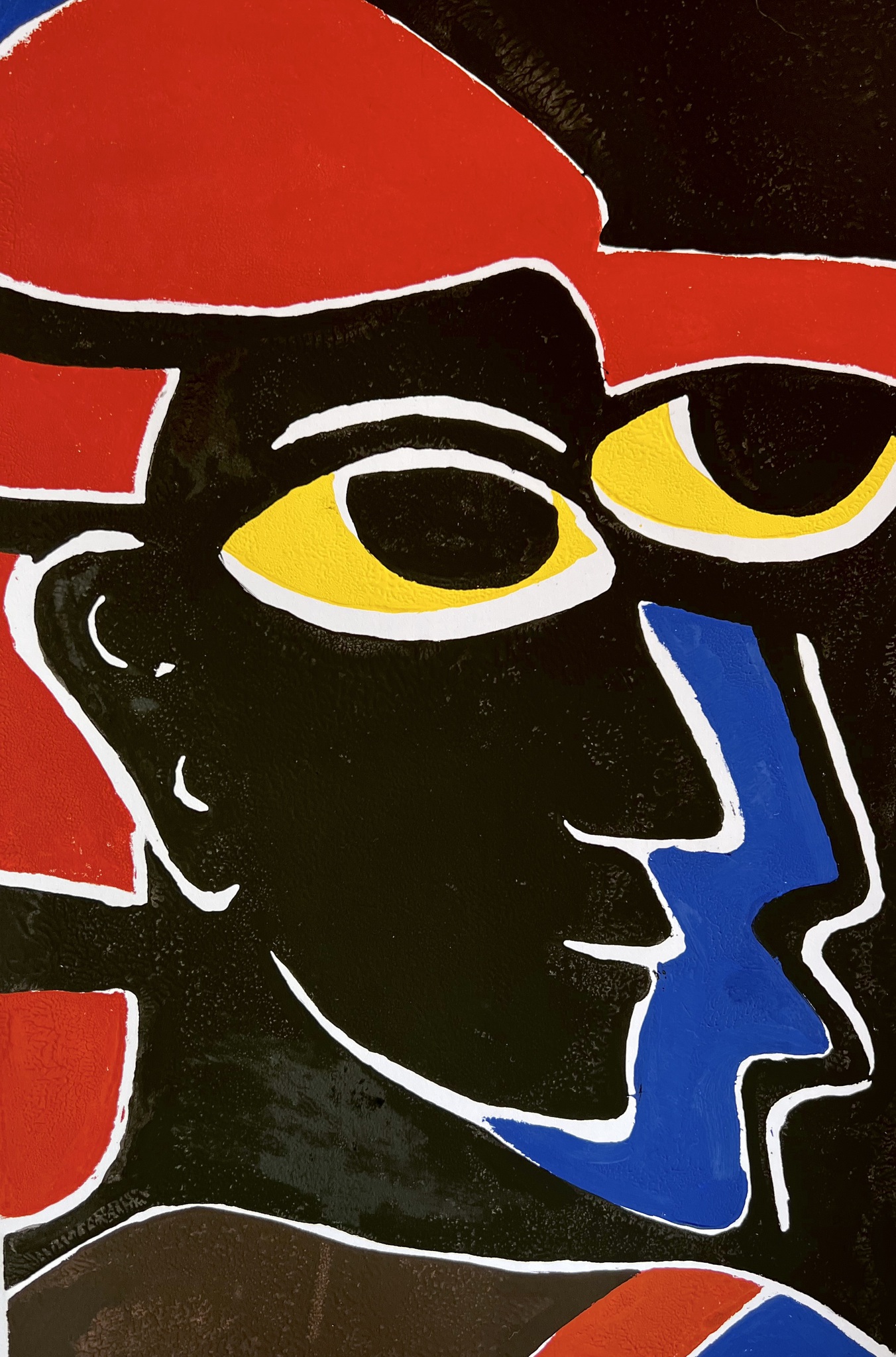 linoleum cut of a black face person, inspired by an image that I found in a magazine