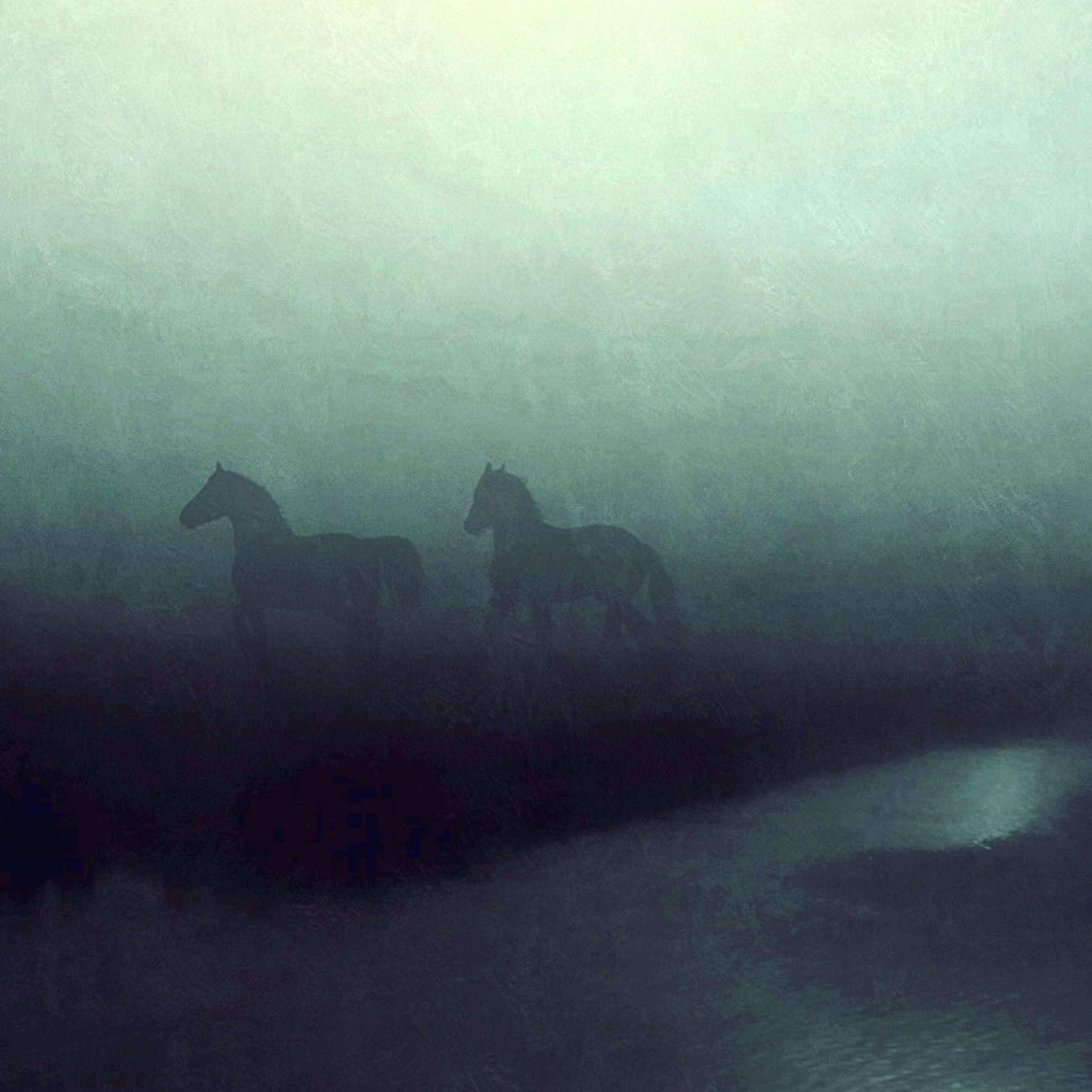 2 paardjes in de mist