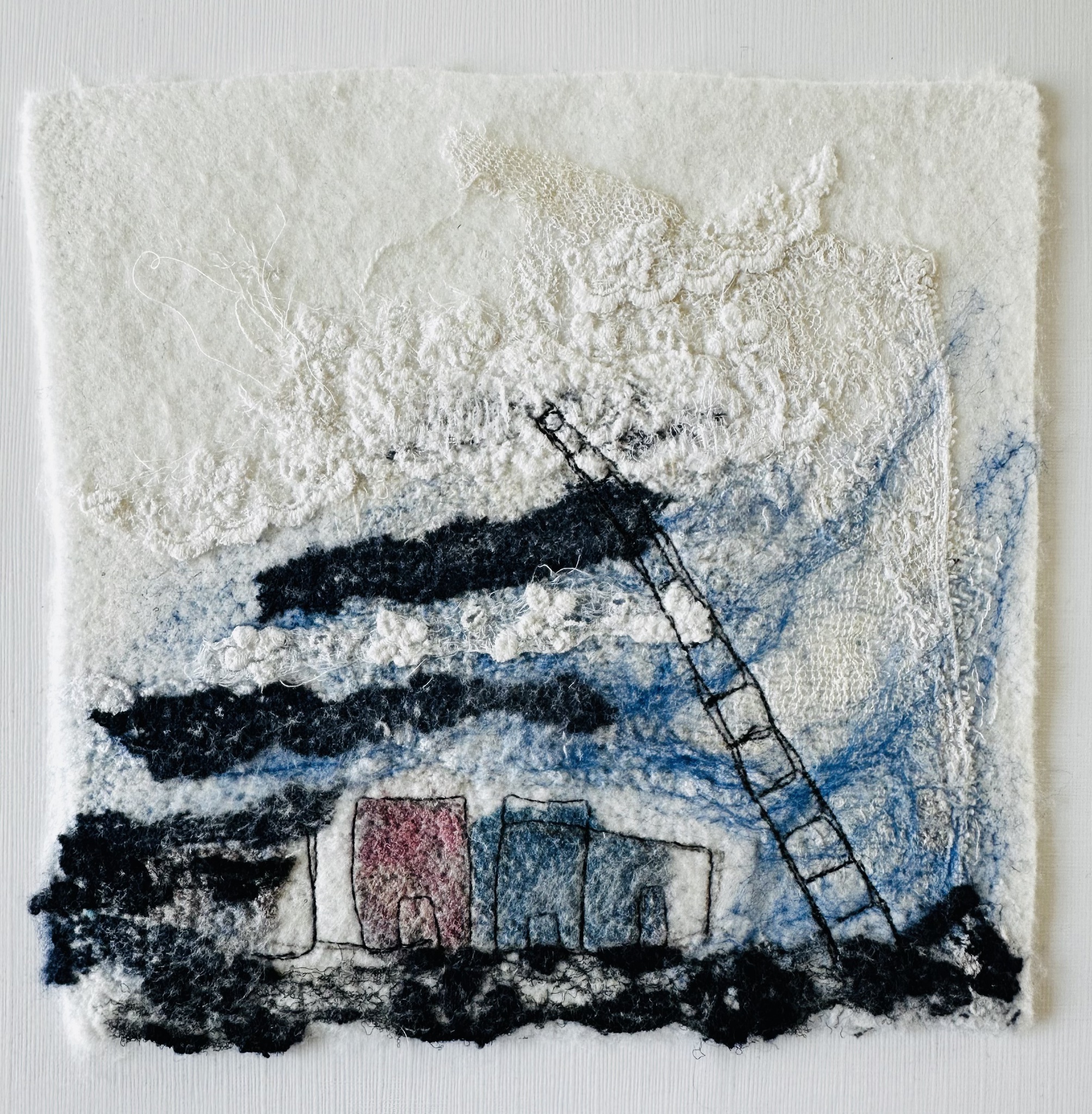 Vilt- en naaitechniek met kant, wol, garen