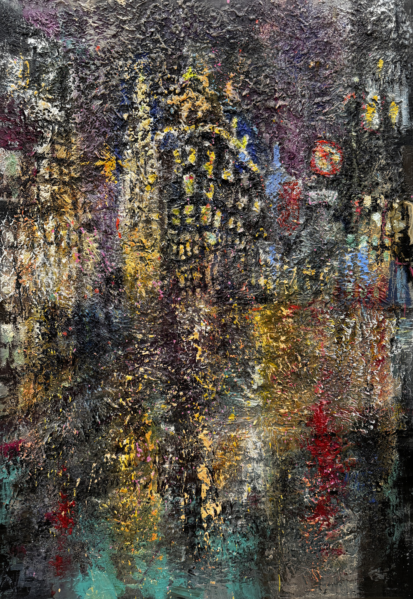 Abstracte en figuratieve schilderijen .Acrylverf op doek + deco- elementen.