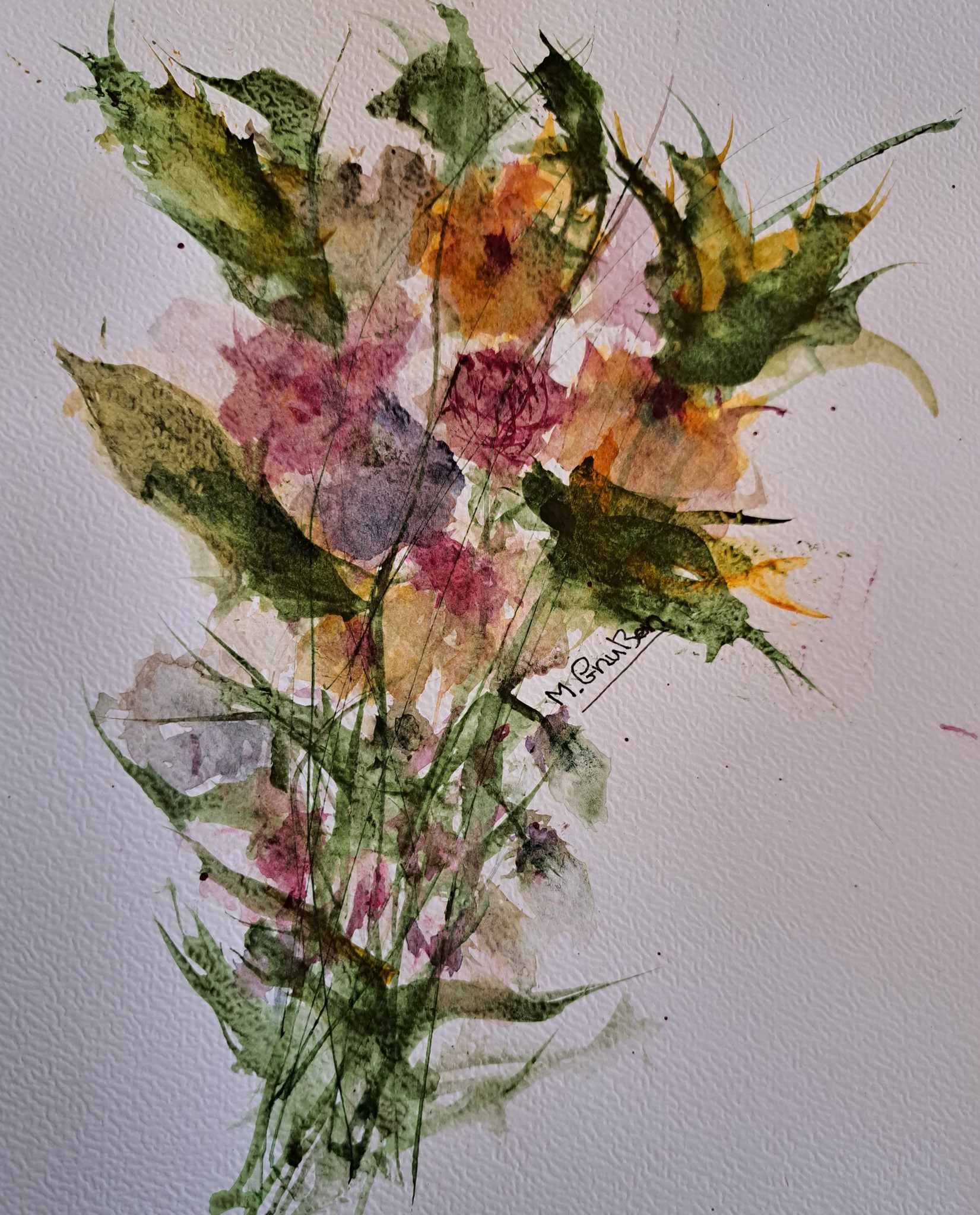 Mooie kleuren ieder boeket wat ik schilder is weer totaal anders Geschilderd met de verf van Daniël Smith prachtige verf met veel pigmenten.