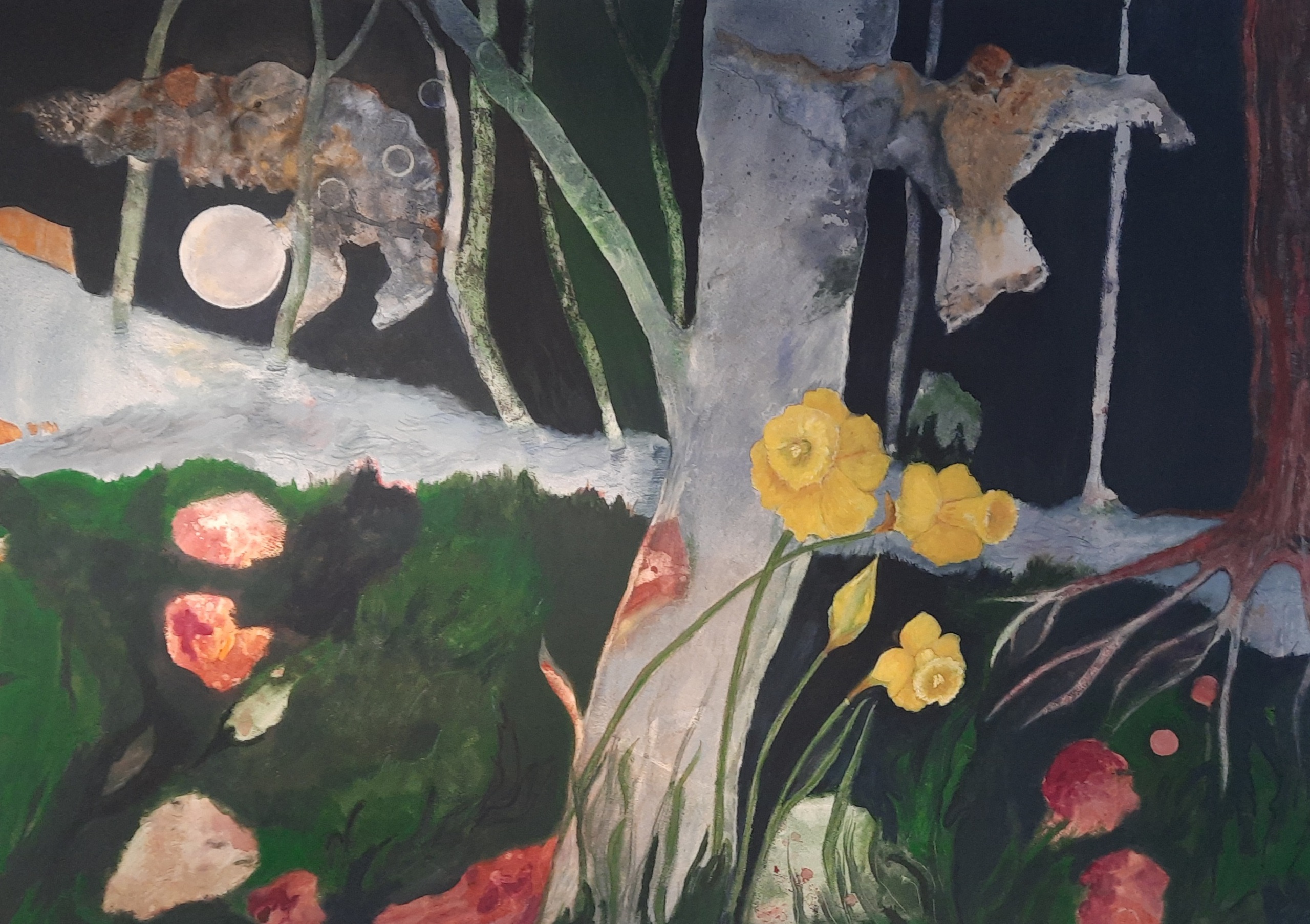 Inkt, olieverf en oliekleurpotlood op katoenpapier op paneel.