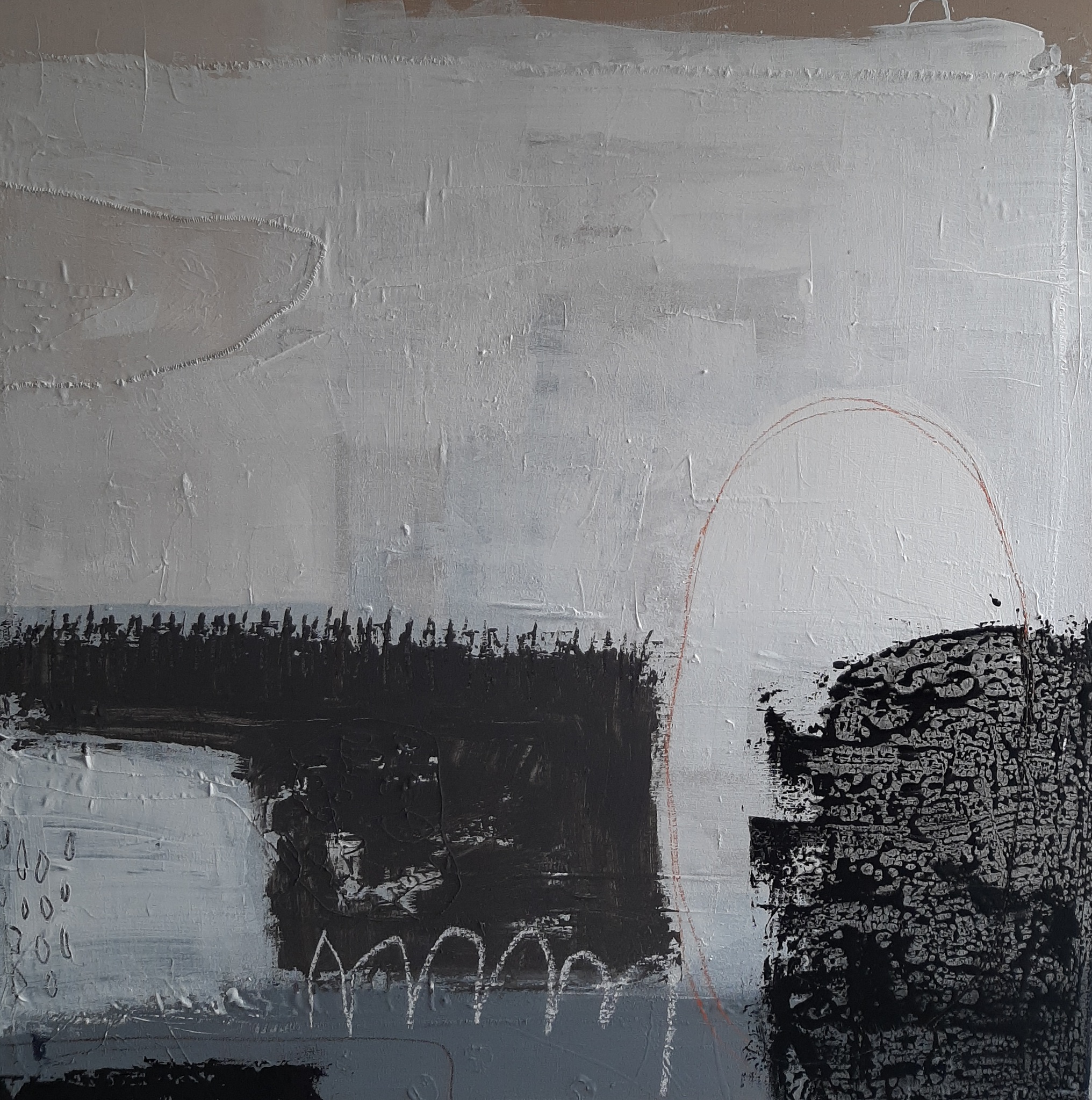 landschappen. Poëtisch maar ook vervreemdend. Met humor en onverwachte wendingen. De kern van de compositie wordt gevormd door grote vormen met een krachtige uitstraling , toegevoegd worden kleine details waardoor je al lopend door het schilderlandschap stuit op onverwachte ontdekkingen.