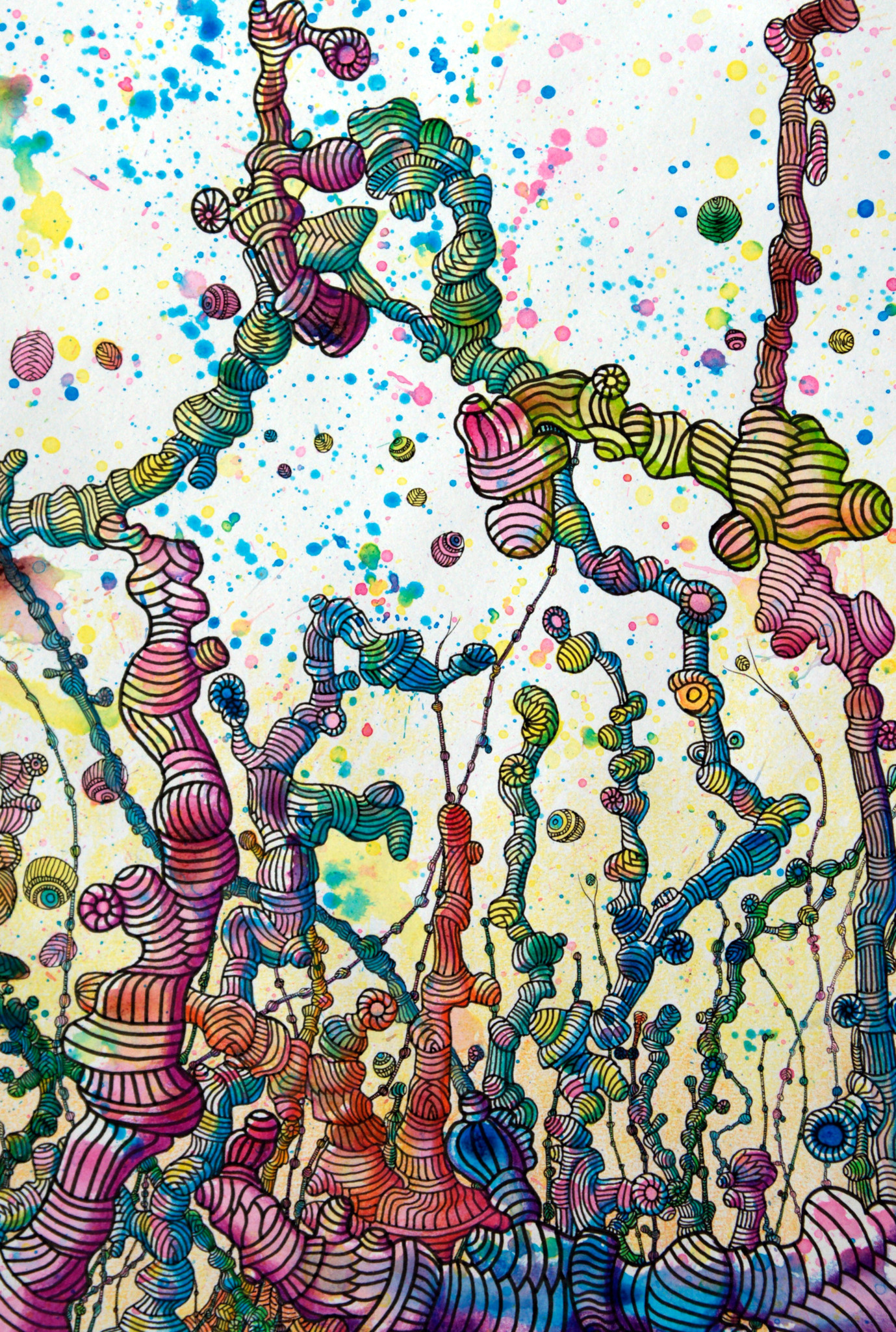 Vrijelijk associëren op organische vormen met verschillende materialen en technieken.