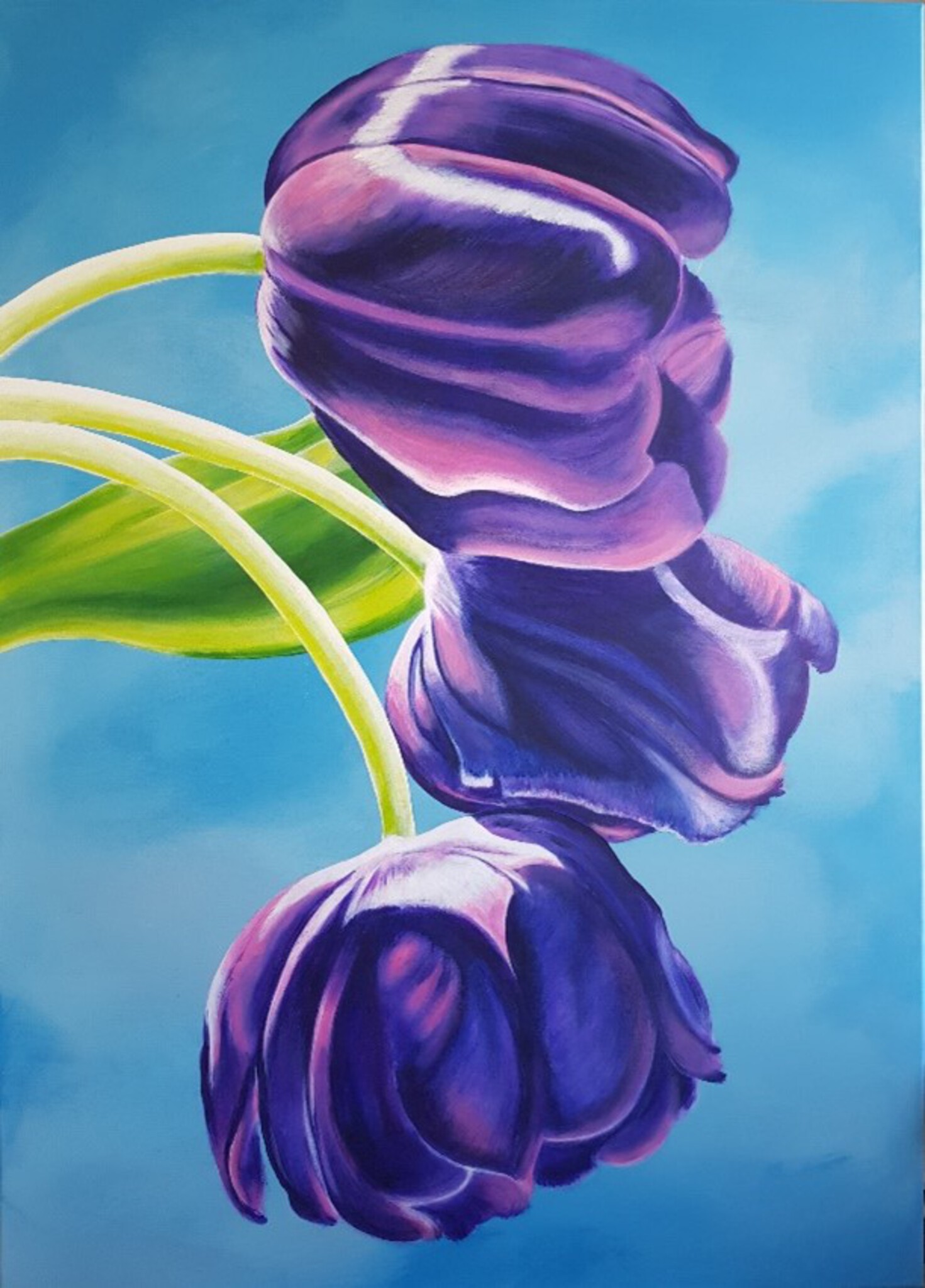 Tulips Purple, acryl op canvas, in 3D