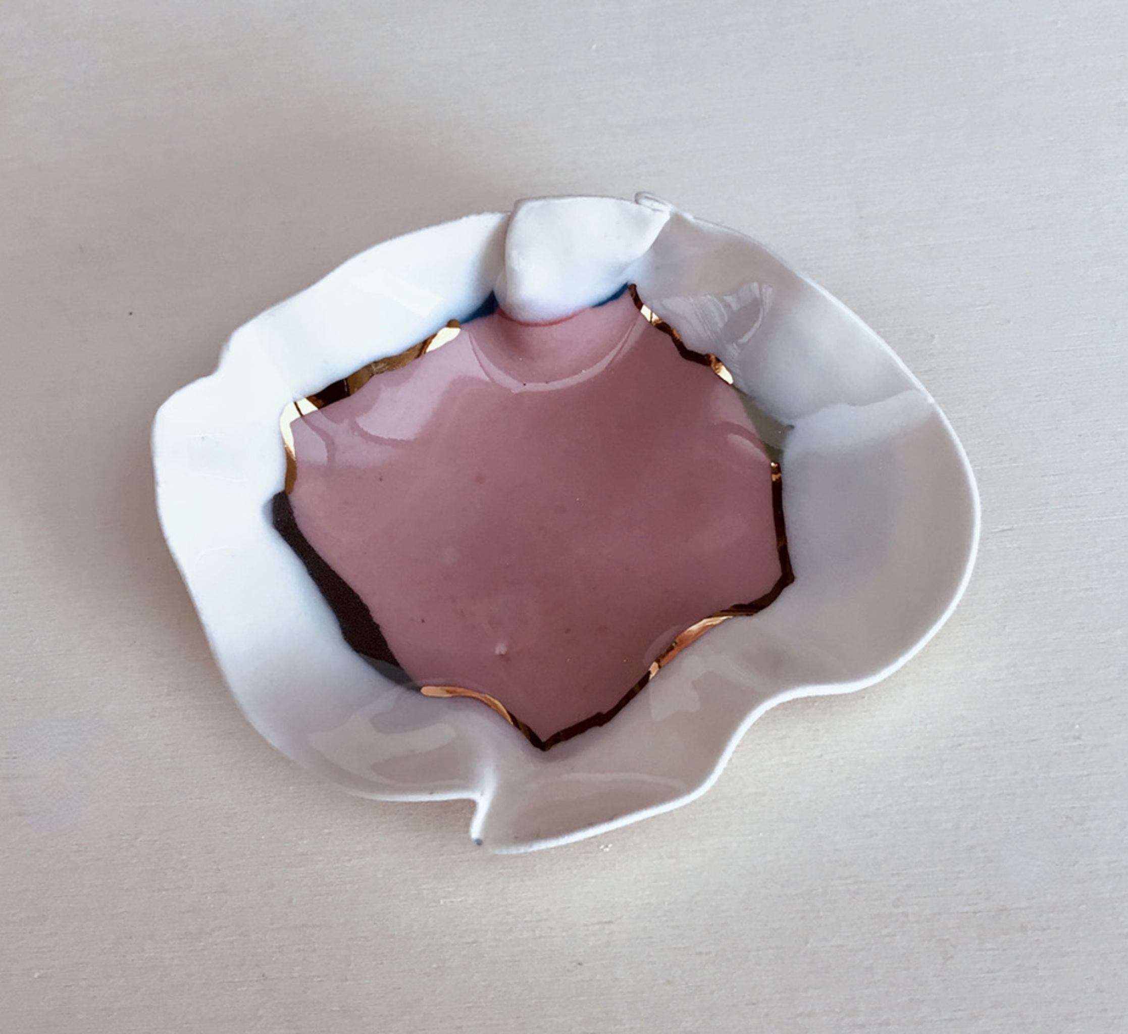 Uit de serie "Kleinschalig" / porselein, stains en goudluster / 3x gebakken