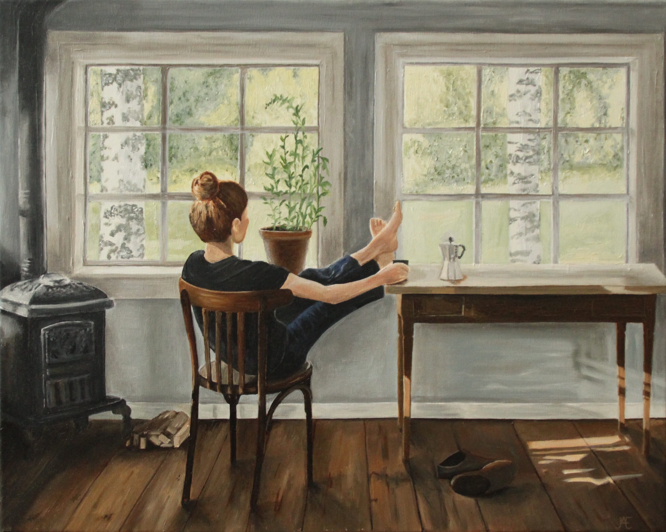 Woman Olieverf Oilpainting Oilpaint Olieverfschilderij Coffee Cabin Drinking Realistischekunst Realisticart Boshuisje Cabininthewoods Inthewoods Justsitandrelax Indipendentwoman Strongwoman Sheistheboss Timebymyself