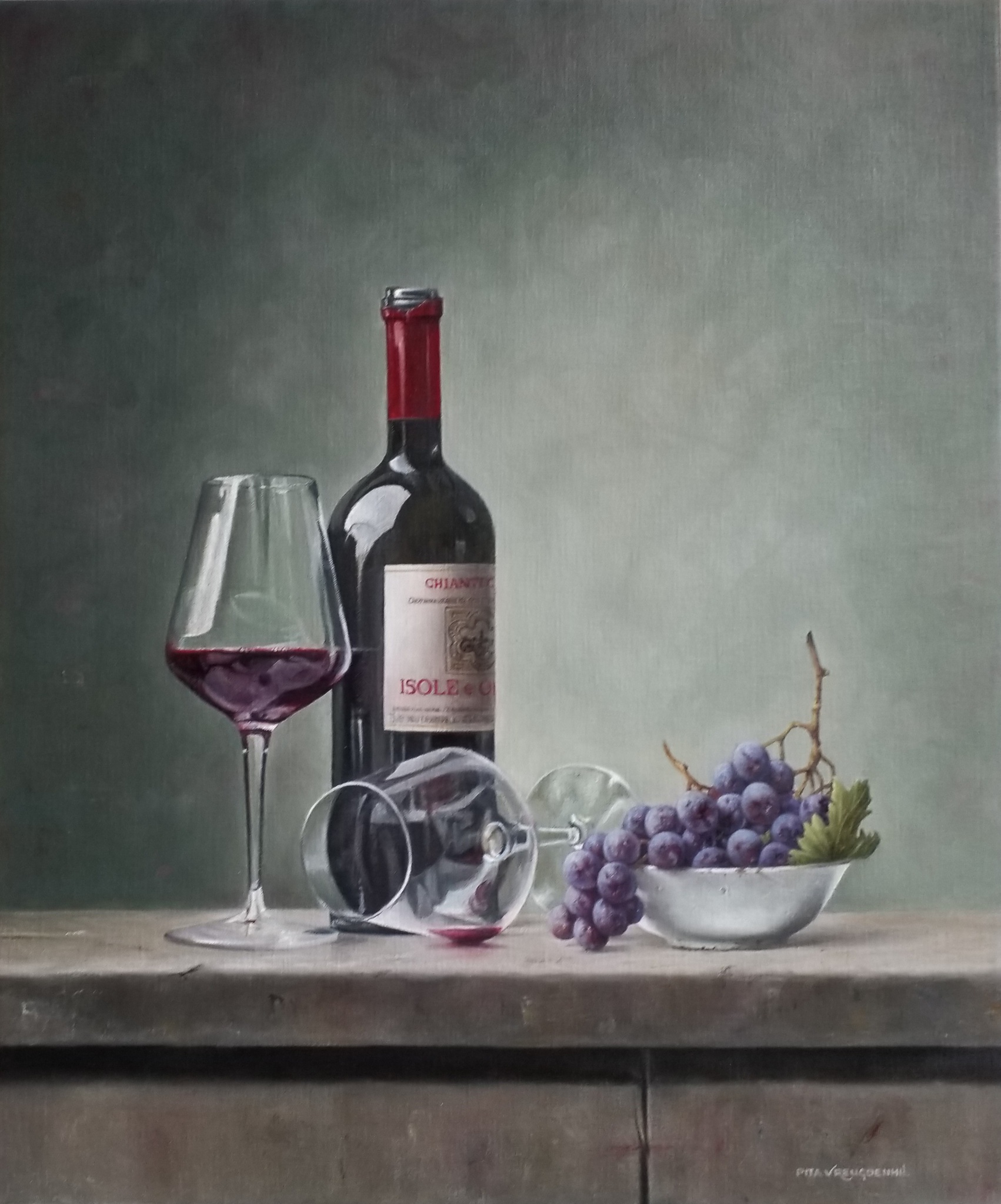 Italië, glaasje wijn, druiven, zomer, vakantiegevoel, alles komt samen in dit schildderij Info: Kunstatelier Pita, Emst www.pitavreugdenhil.nl