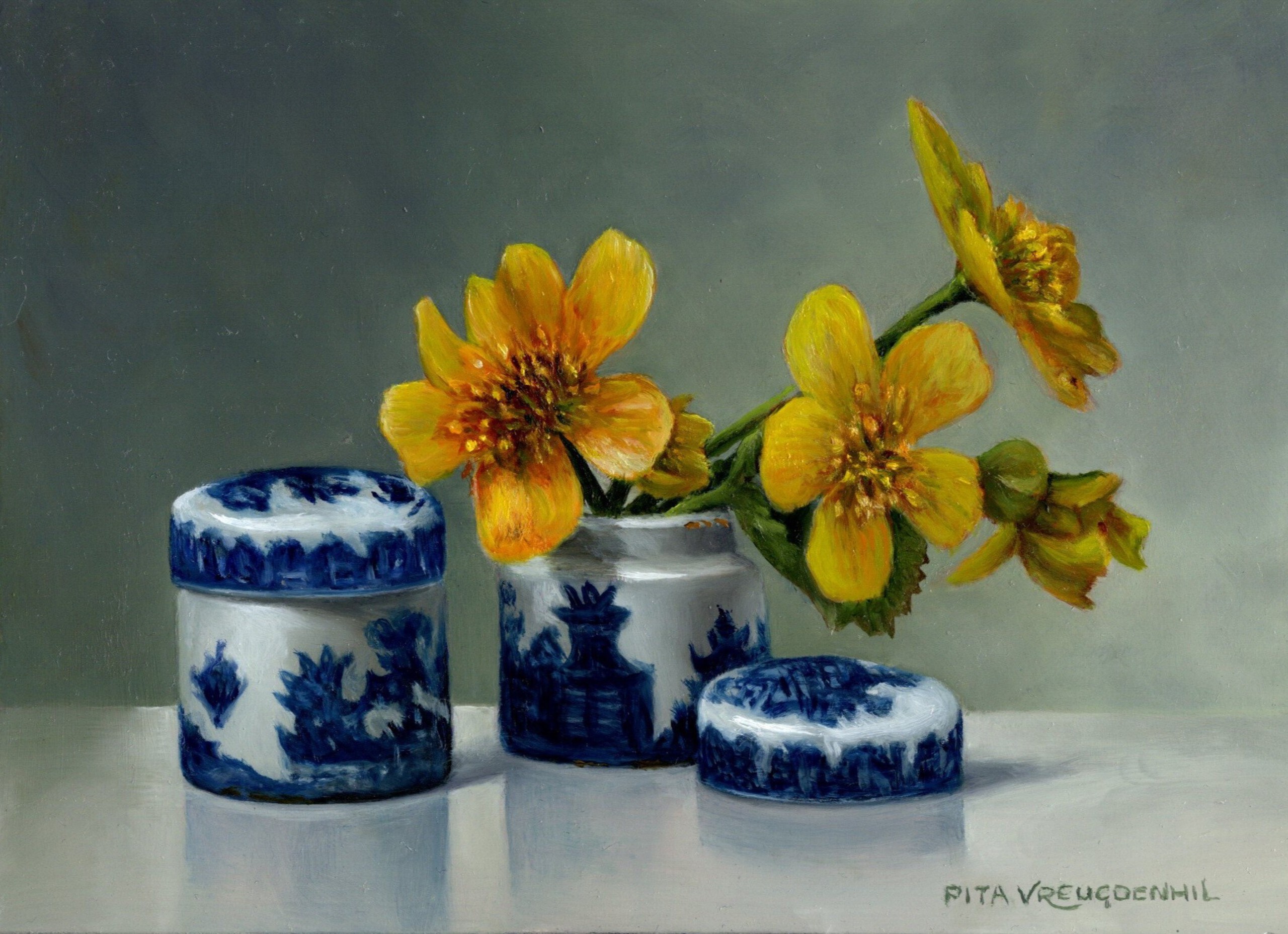 De stillevens van Pita Vreugdenhil onderscheiden zich niet louter door de uiterste precisie waarmee voorwerpen in een weloverwogen compositie worden geschilderd. Door er voortdurend naar te streven de weergave van de onderwerpen boven de exacte waarneming uit te laten stijgen toont zij haar beleving van de werkelijkheid. Stofuitdrukking, detaillering en een subtiel spel van licht en schaduw, vorm en kleur zijn kenmerkend voor haar werk.