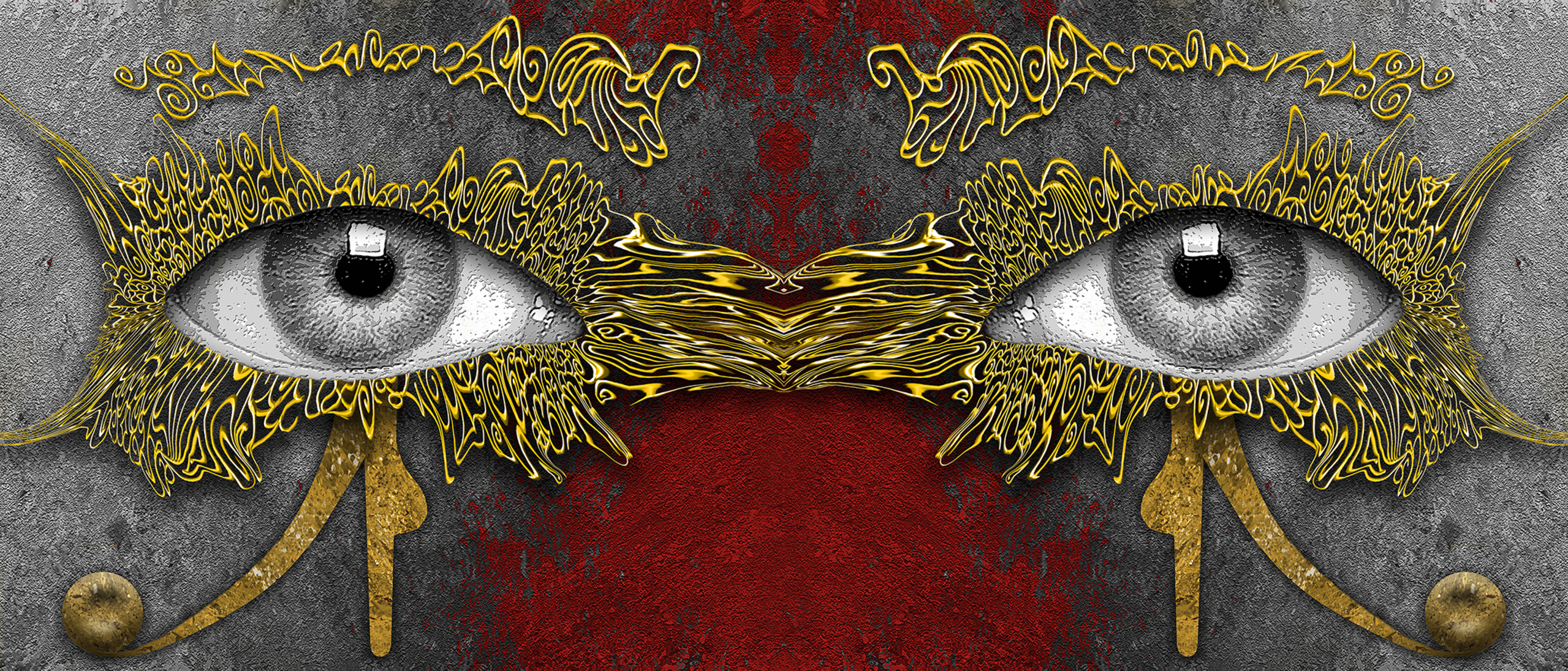 Grijs Rood Geel Digitaal Abstraherend Ra Dibond Horus