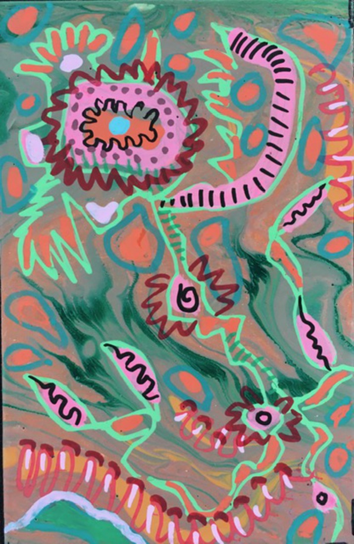 Mijn werk is zeer kleurrijk. Ik balanceer graag op de grens tussen figuratief en abstract, waarbij ik mijn eigen droomwereld creeer. Mijn inspiratie haal ik uit de natuur en het materiaal.