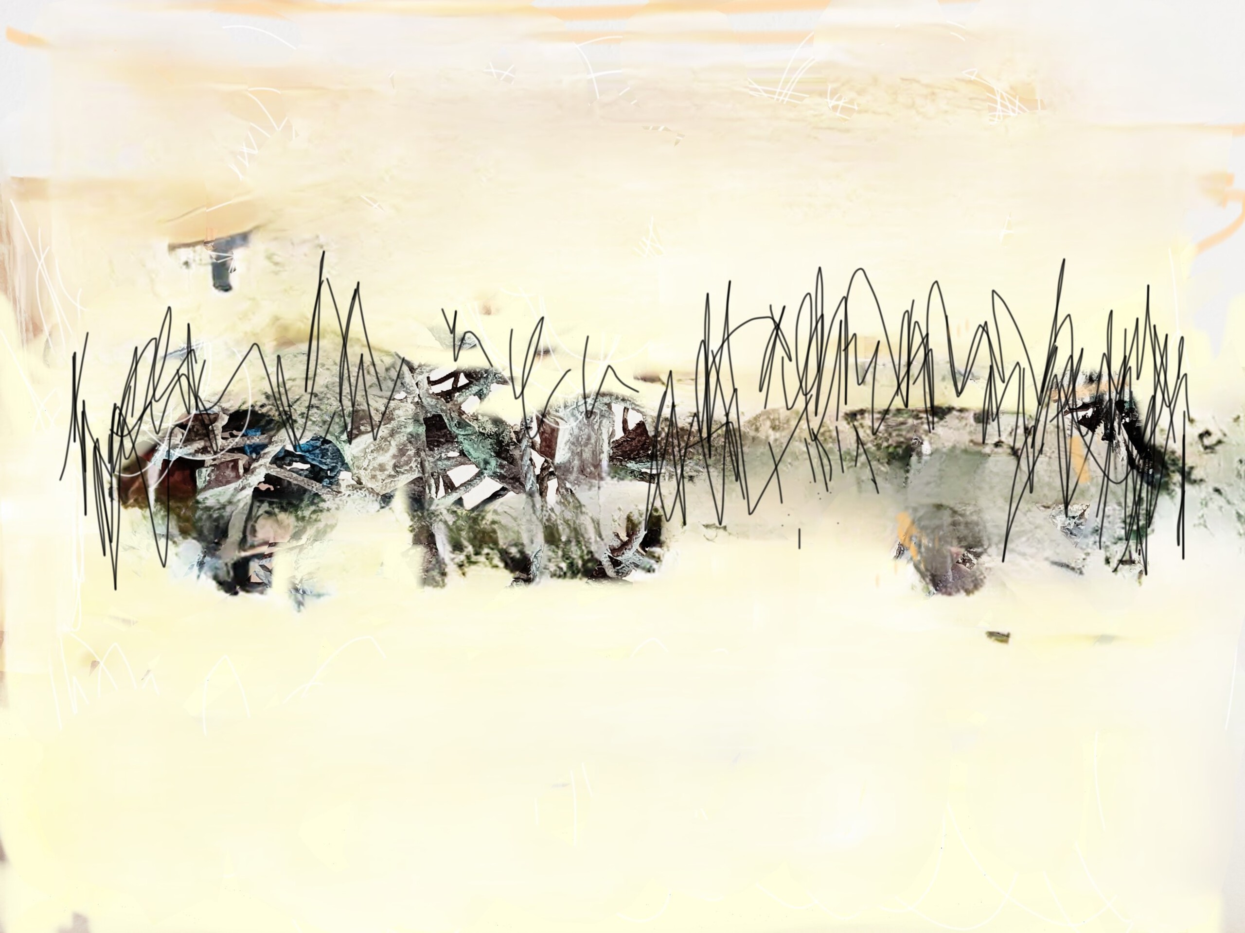Ik zoek steeds opnieuw naar balans tussen chaos en stilte, ontregeling en orde. Soms ontstaat het in gelaagde structuren en levendige lijnen, soms in de verstilling en ruimte.